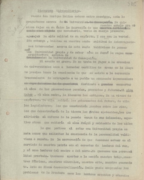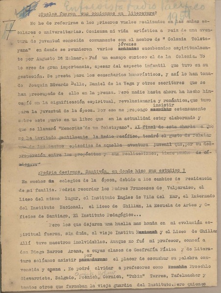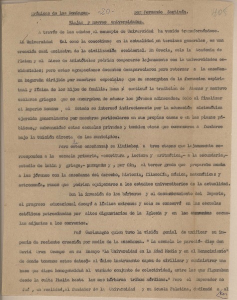 Viejas y nuevas universidades [manuscrito] Fernando Santiván.