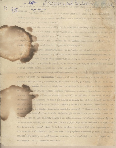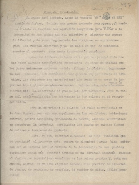 [A la revolución científica...] [manuscrito] Fernando Santiván.