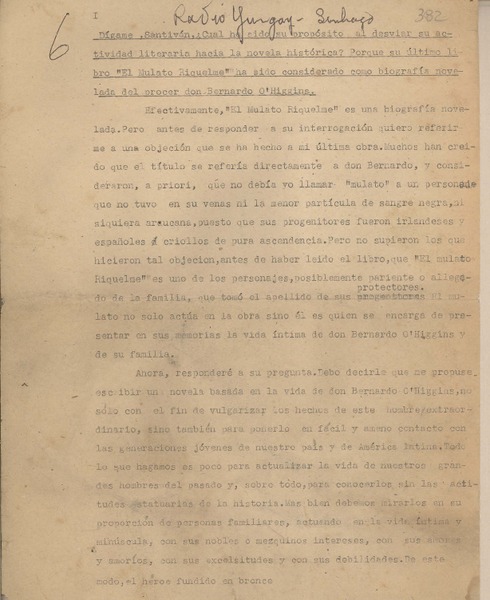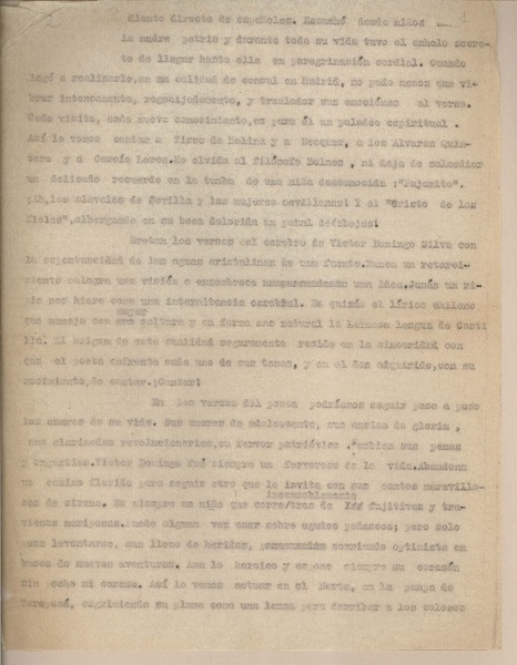 Aún no se ha puesto el sol por Víctor Domingo Silva. [manuscrito] Fernando Santiván.