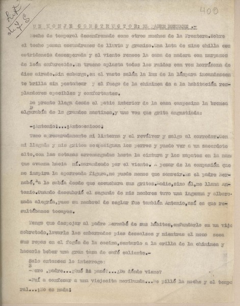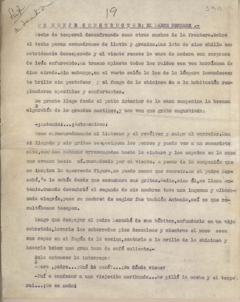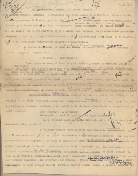 Un capuchino constructor: el padre Bernabé [manuscrito] Fernando Santiván.