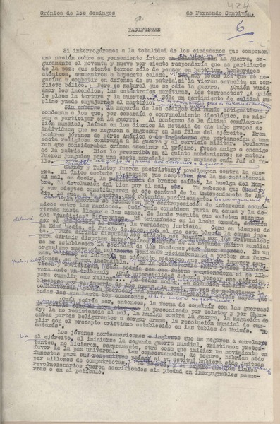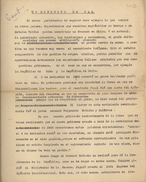 Un ejercito de Paz [manuscrito] Fernando Santiván.