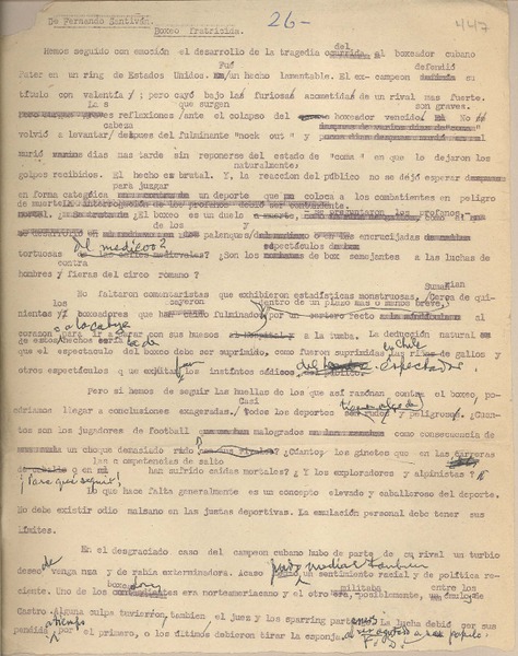 Boxeo fratricida [manuscrito] Fernando Santiván.