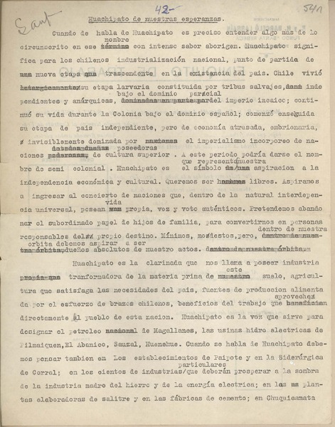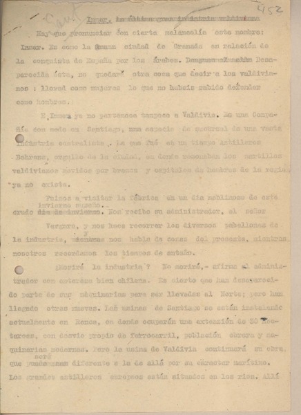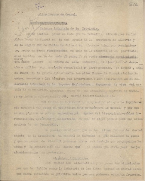 Altos hornos de Corral [manuscrito] Fernando Santiván.