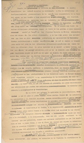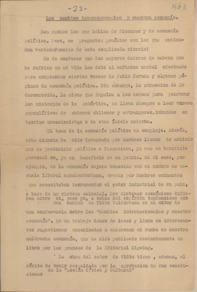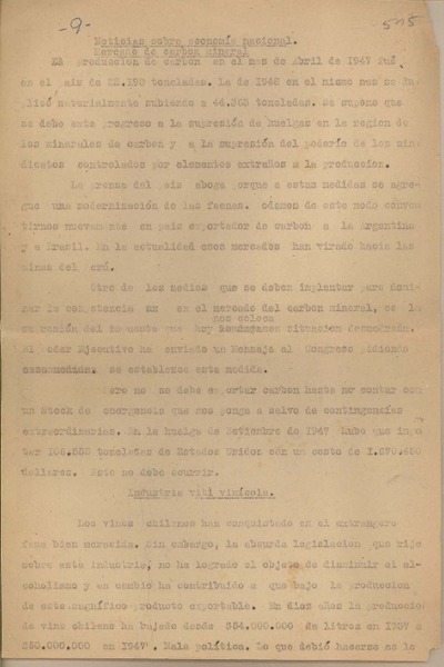 Ibañez Boggiana, Adolfo - Manuscritos chilenos - González Videla, Gabriel - Crónicas - Economía