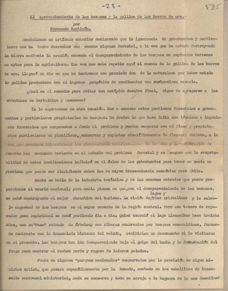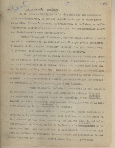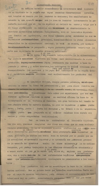 Alimentación nacional [manuscrito] Fernando Santiván.