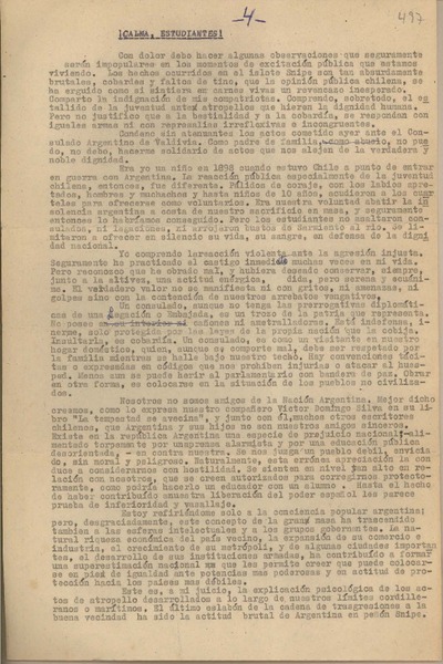 Calma, estudiantes! [manuscrito] Fernando Santiván.