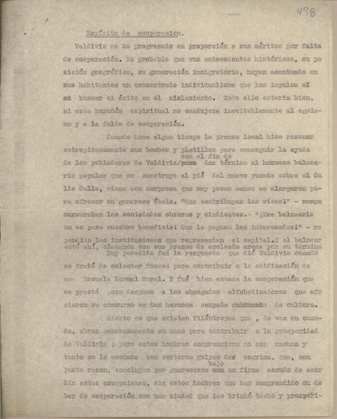 Manuscritos chilenos - Cooperativas agrícolas - Crónicas