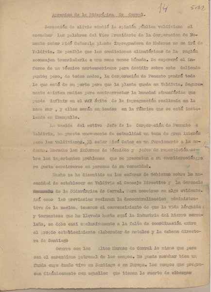 Apremios de la siderúrgica de Corral [manuscrito] Fernando Santiván.