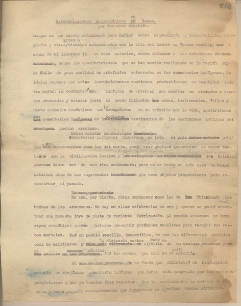 Arte valdiviano [manuscrito] Fernando Santiván.