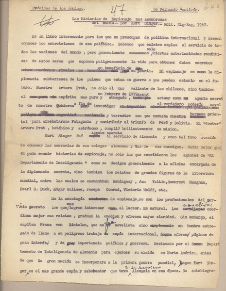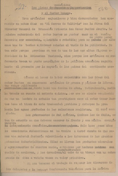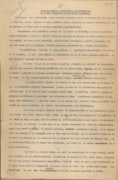 Bustos Aburto, Oscar - Manuscritos chilenos - Artículos periodísticos - Aguirre Cerda, Pedro