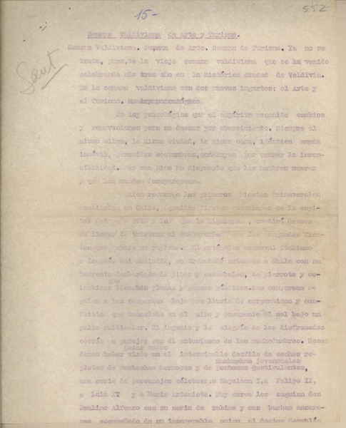 Semana valdiviana de arte y turismo [manuscrito] Fernando Santiván.