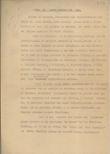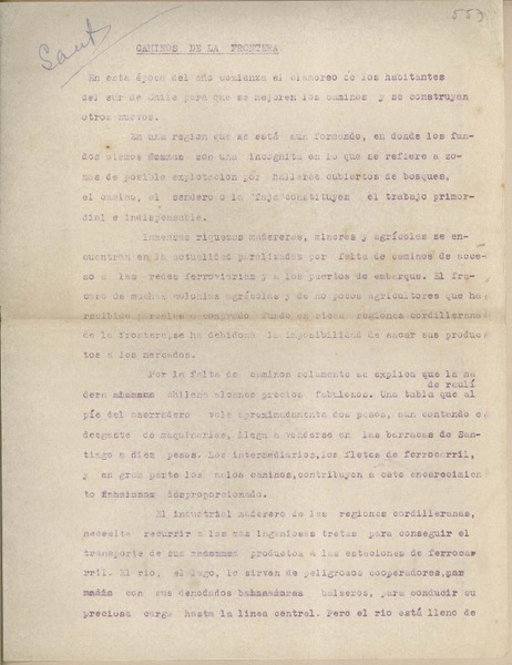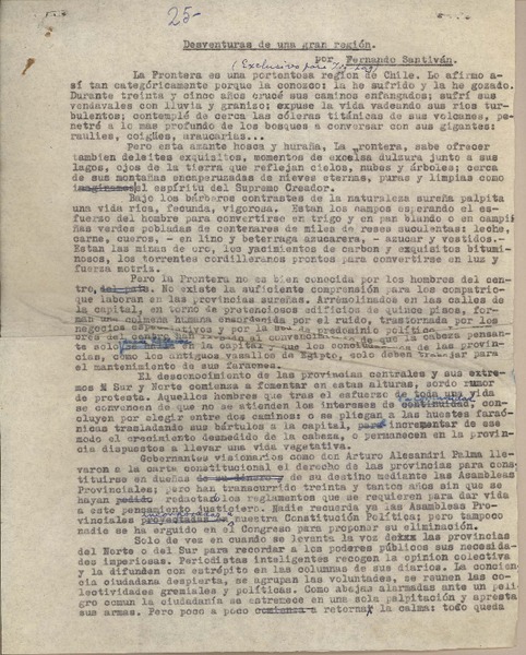 Caminos de la frontera [manuscrito] Fernando Santiván.