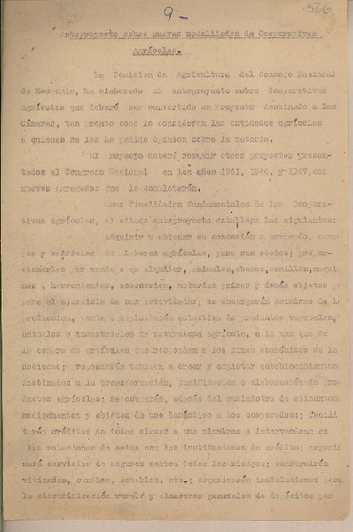 Anteproyecto sobre nuevas modalidades de cooperativas campesinas [manuscrito] Fernando Santiván.