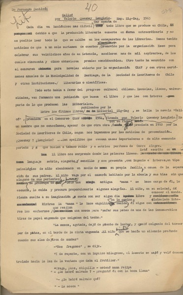 Manuscritos chilenos - Calicó - Quesney Langlois, Valerio - Reseñas de libros
