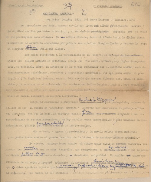 [Calla Carolina Geel] [manuscrito] Fernando Santiván.