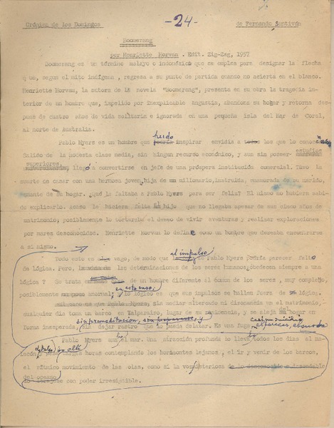 Boomerang - Manuscritos chilenos - Reseñas de libros - Morvan, Henriette