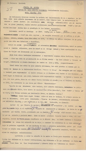 Serge, Ivo - Correspondencia - Autores chilenos - Manuscritos chilenos - Santiván, Fernando