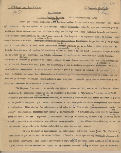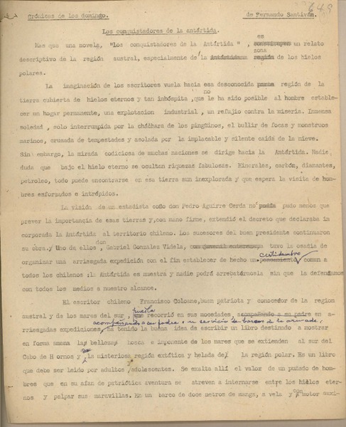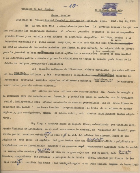 Crónicas - González Videla, Gabriel - Manuscritos chilenos