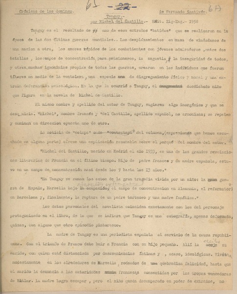 Tanguy - Manuscritos chilenos - Reseñas de libros - Castillo, Michel del