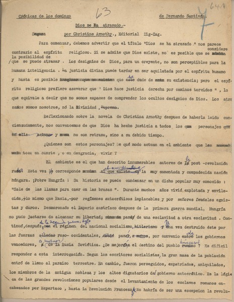 [Avances de la ciencia] [manuscrito] Fernando Santiván.