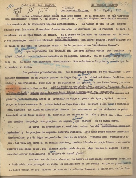 Servidumbre humana - Manuscritos chilenos - Reseñas de libros - Maugham, W. Somerset