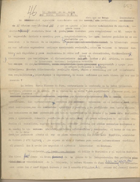 Violín en la calle - Manuscritos chilenos - Reseñas de libros - Viancos de Jara, María