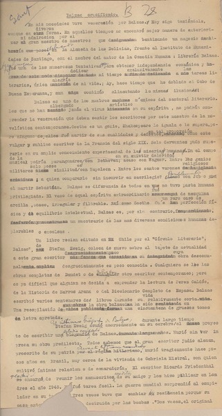 Balzac crucificado [manuscrito] Fernando Santiván.