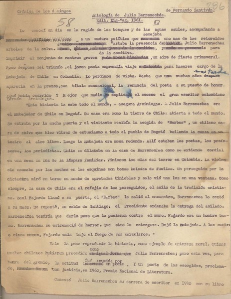 Antología - Manuscritos chilenos - Barrenechea, Julio - Reseñas de libros