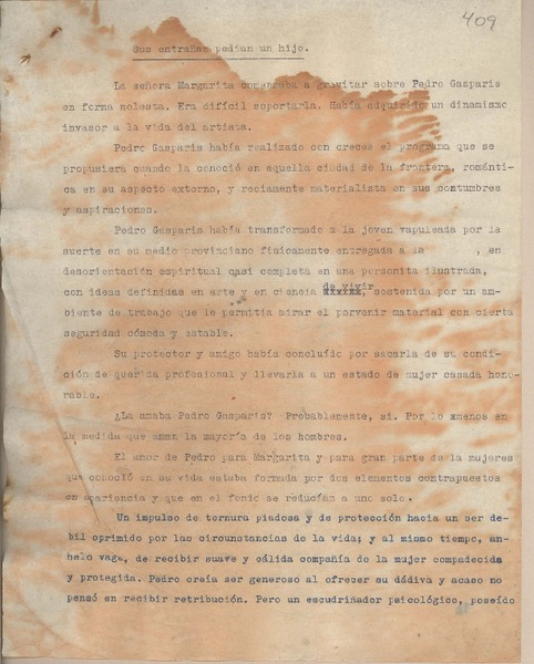 Sus entrañas pedían un hijo [manuscrito] Fernando Santiván.