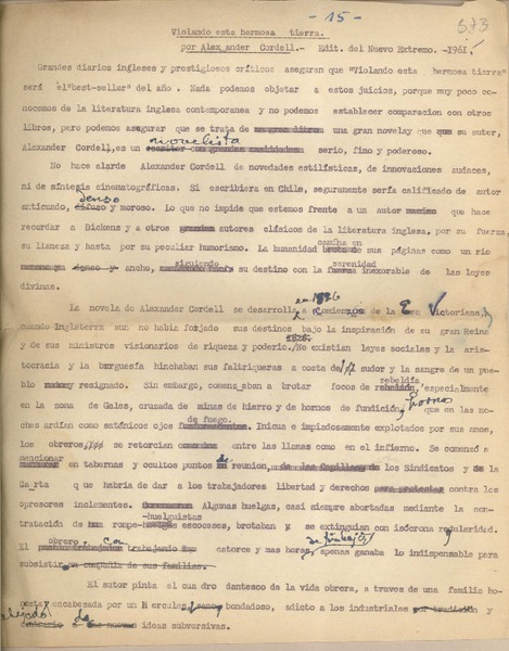 Violando esta hermosa tierra - Manuscritos chilenos - Reseñas de libros - Cordell, Alexander
