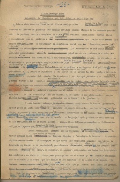 Antología de cuentos - Manuscritos chilenos - Silva, Víctor Domingo - Reseñas de libros