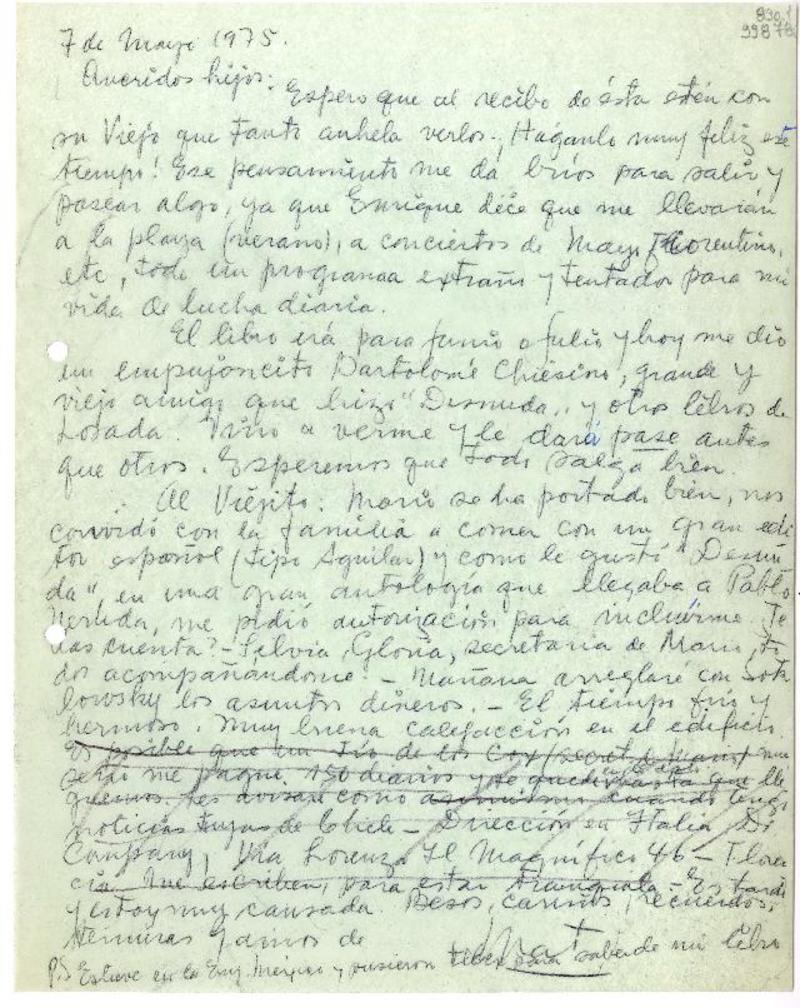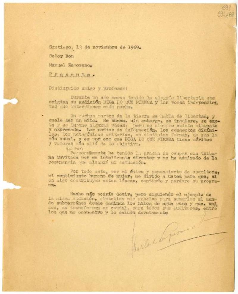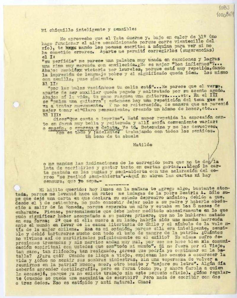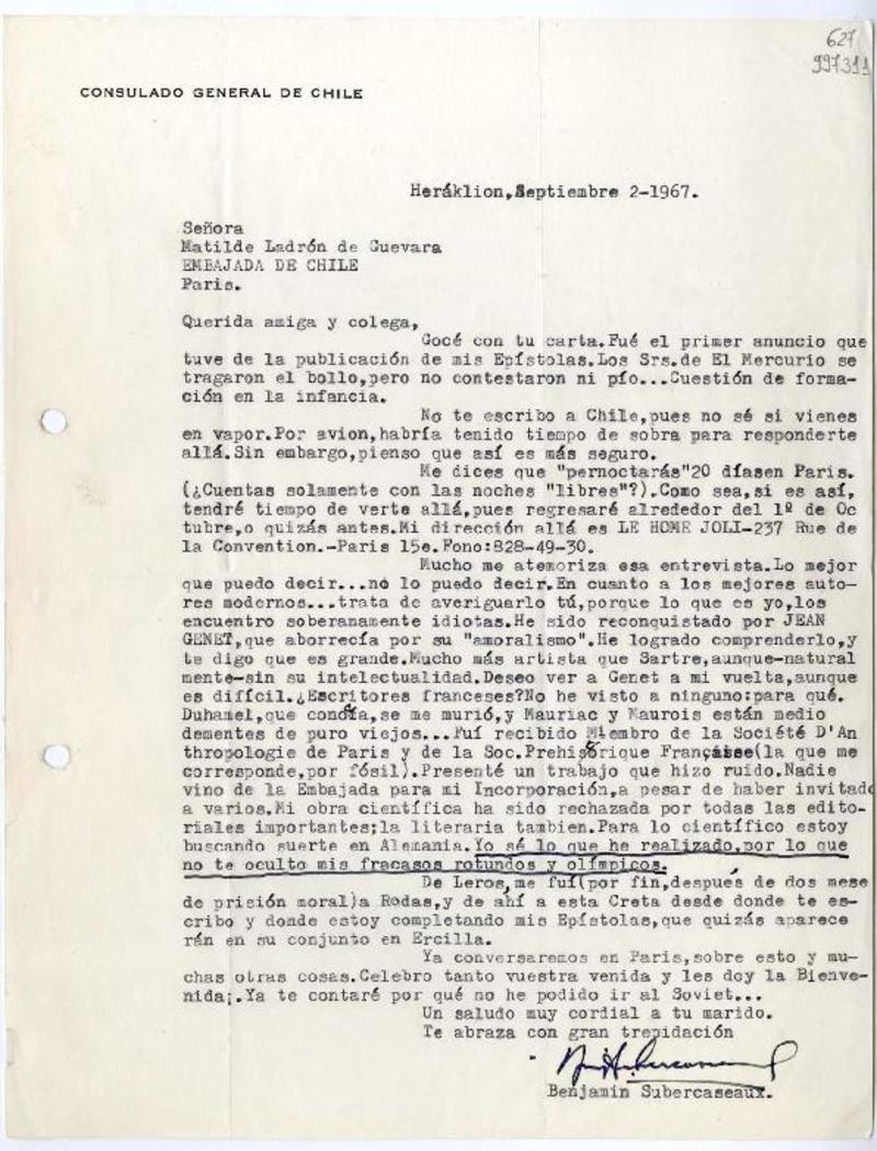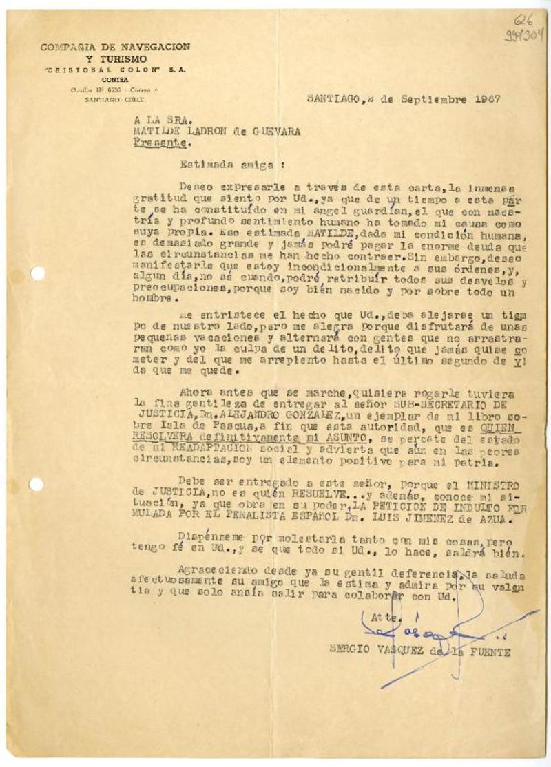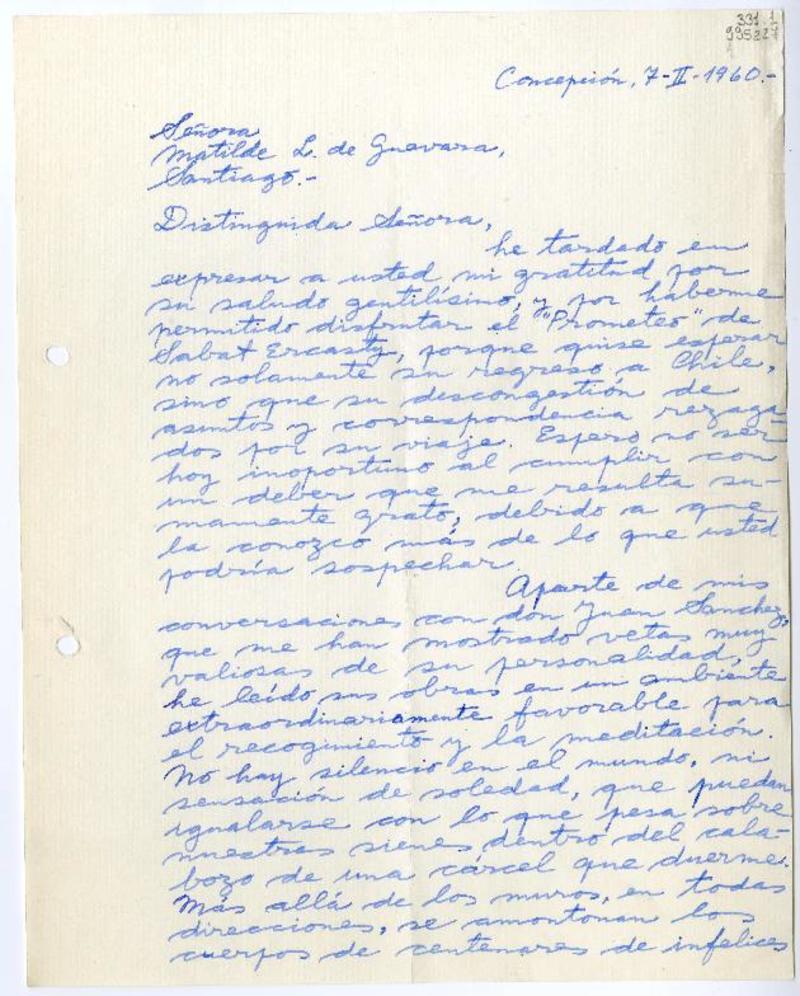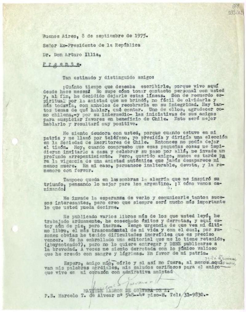 Manuscritos chilenos - Correspondencia - Autoras chilenas - Ladrón de Guevara, Matilde - Valech, Sergio