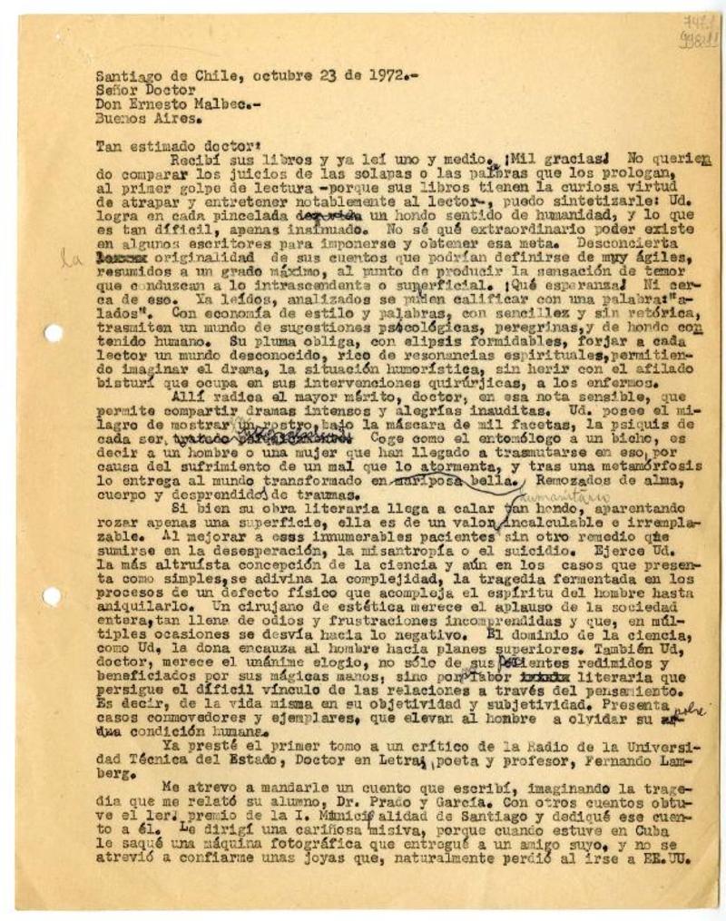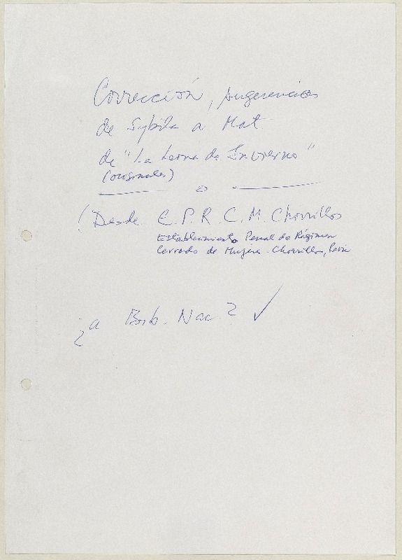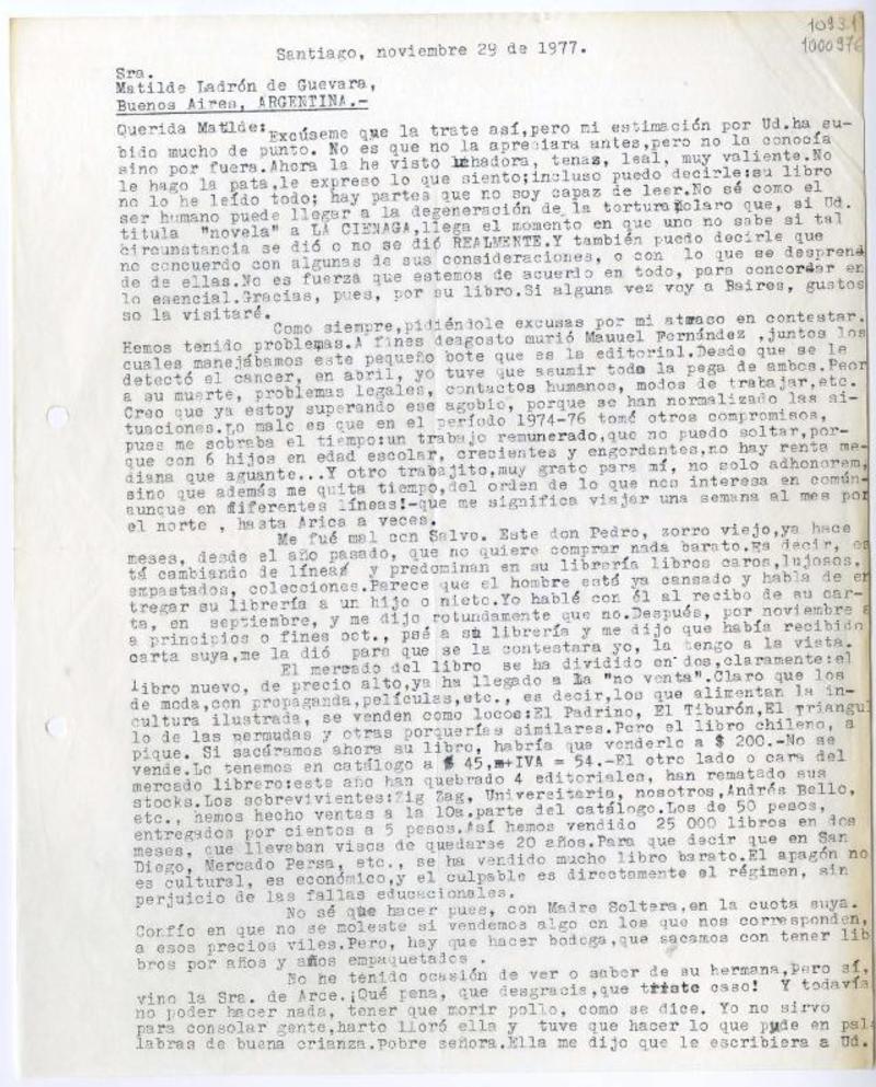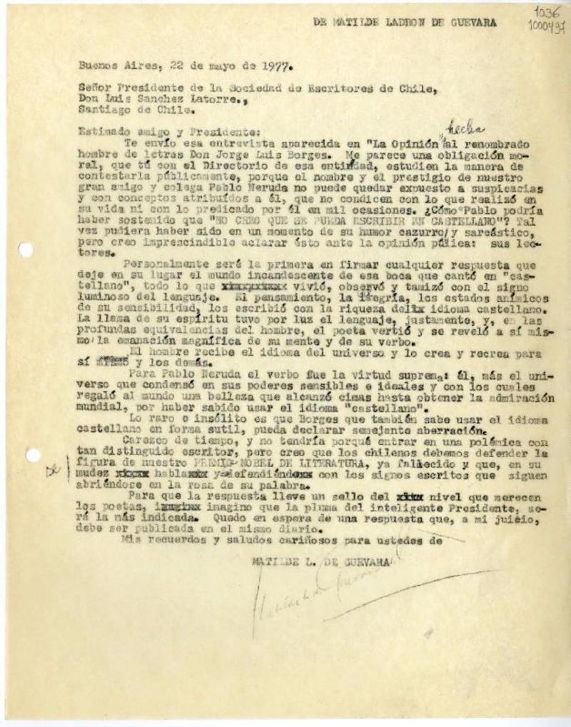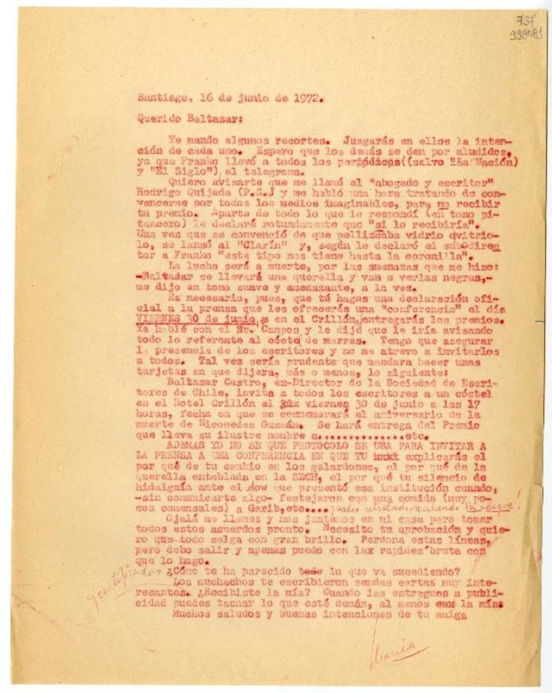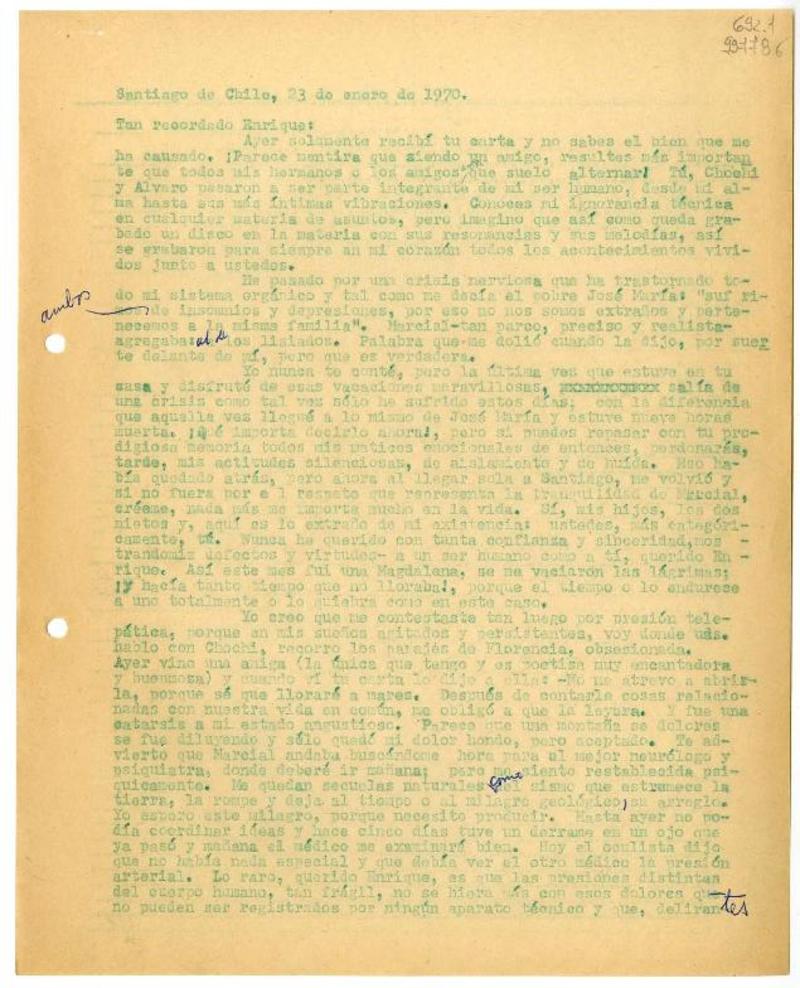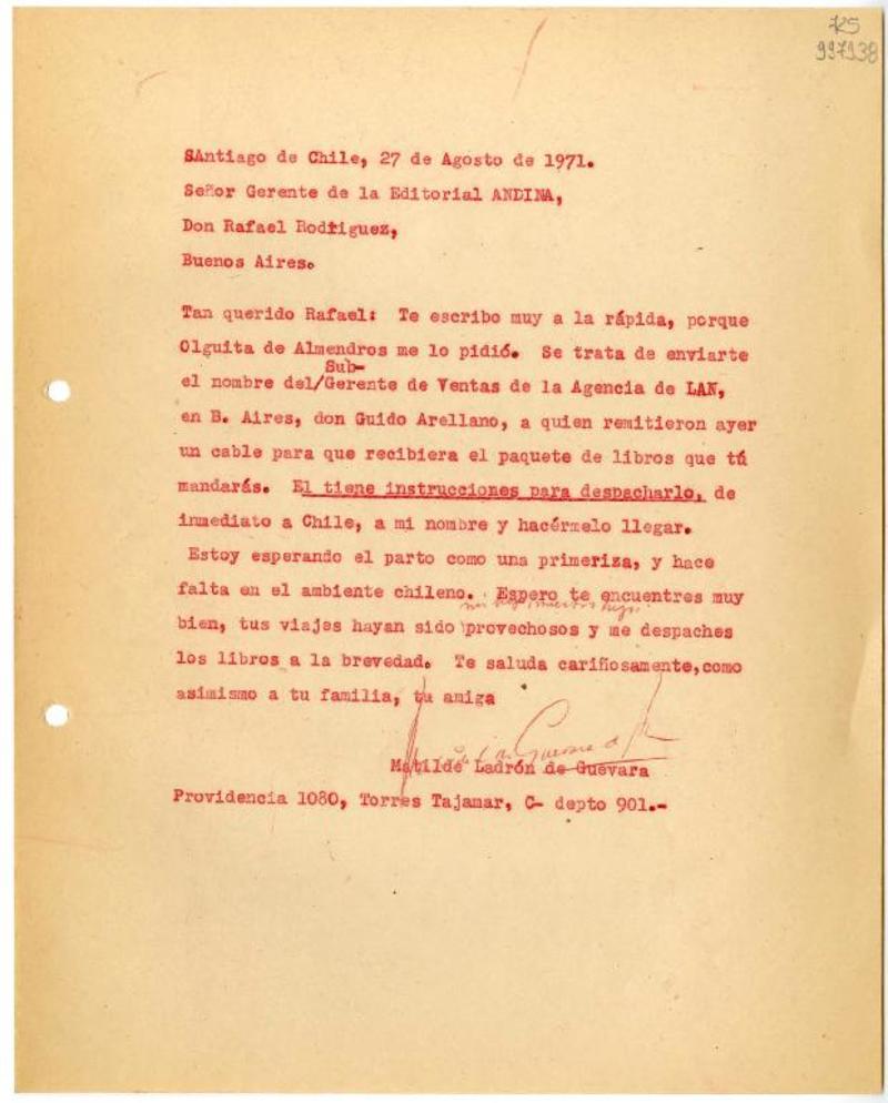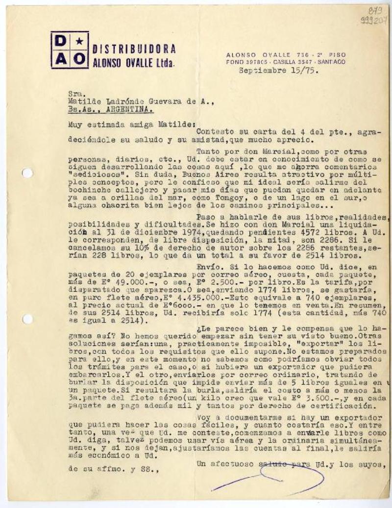Manuscritos chilenos - Correspondencia - Autoras chilenas - Ladrón de Guevara, Matilde - Valech, Sergio