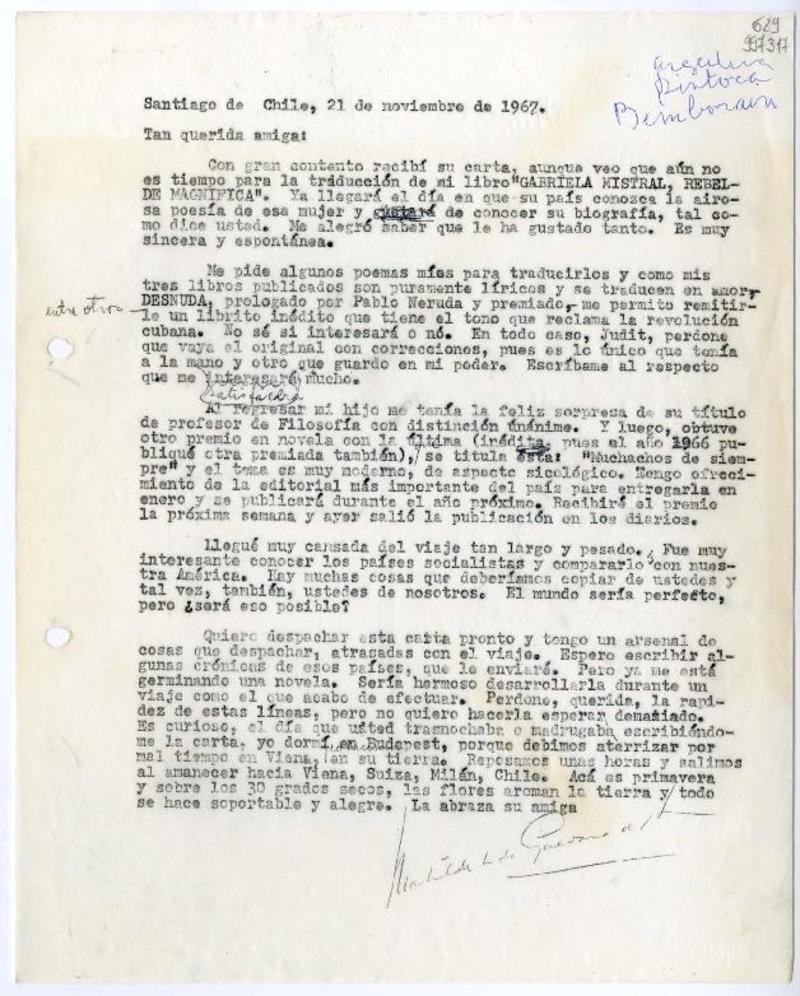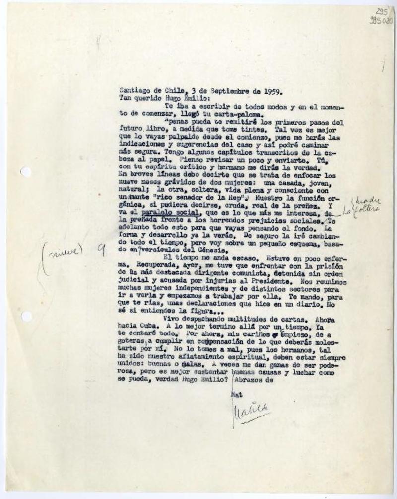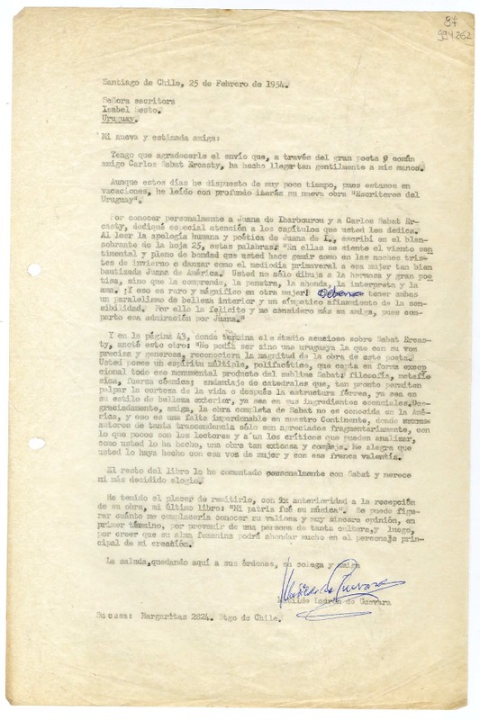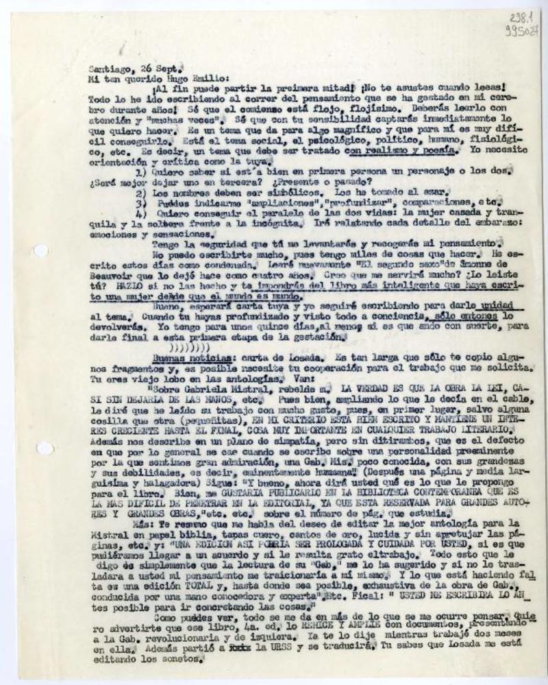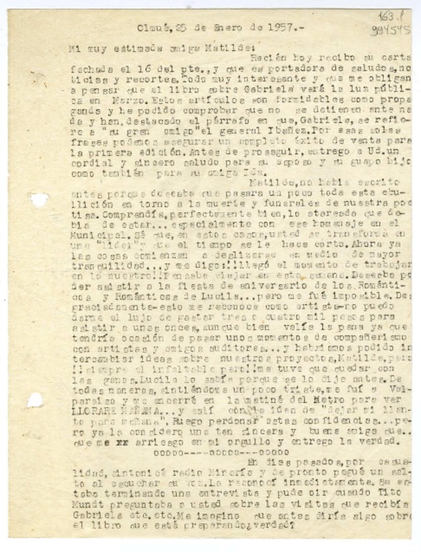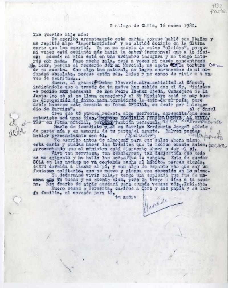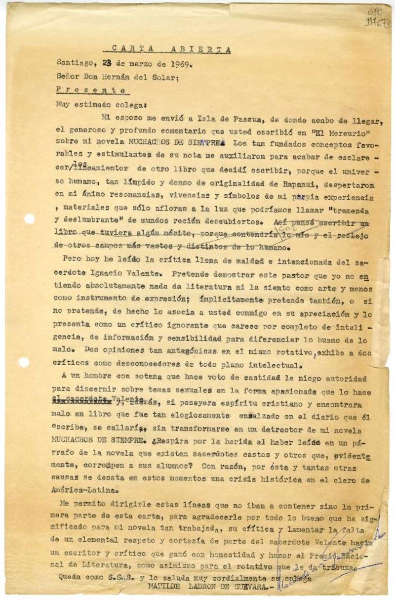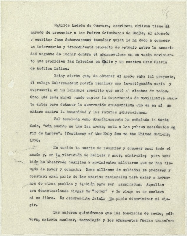 Manuscritos chilenos - Correspondencia - Autoras chilenas - Ladrón de Guevara, Matilde - Valech, Sergio