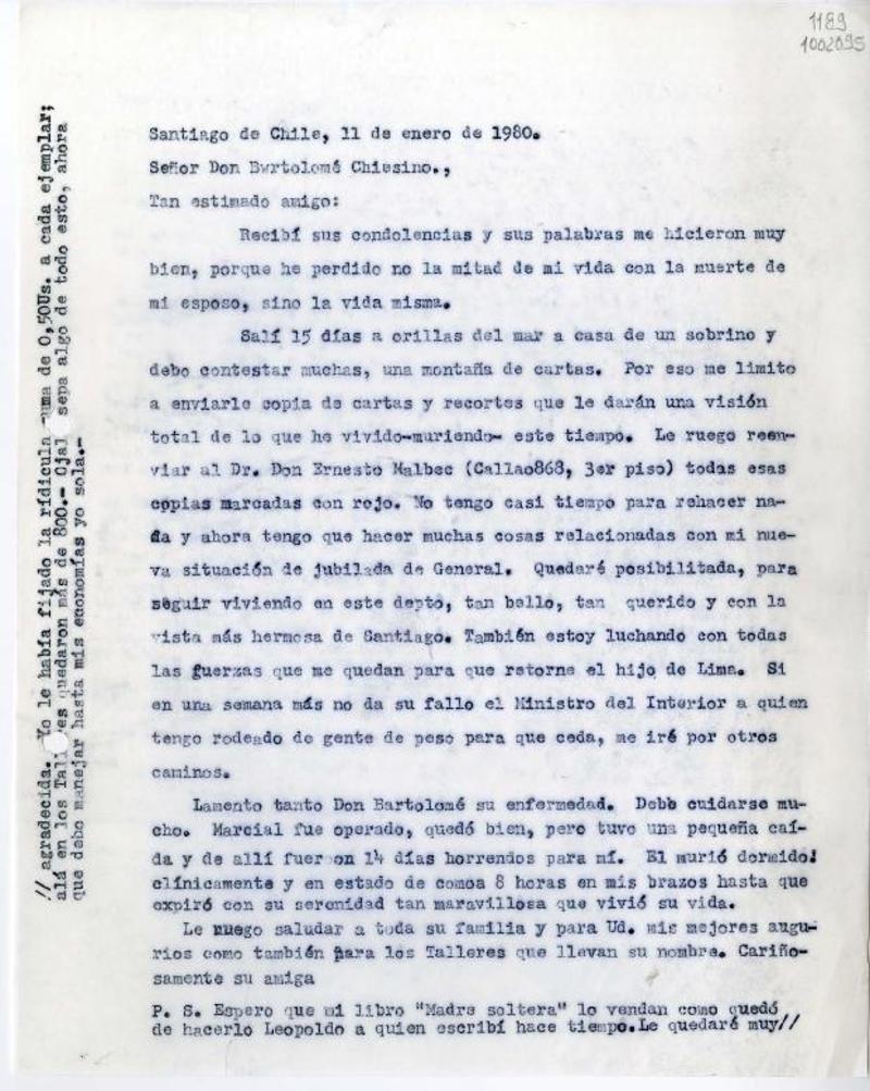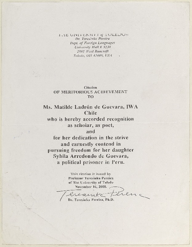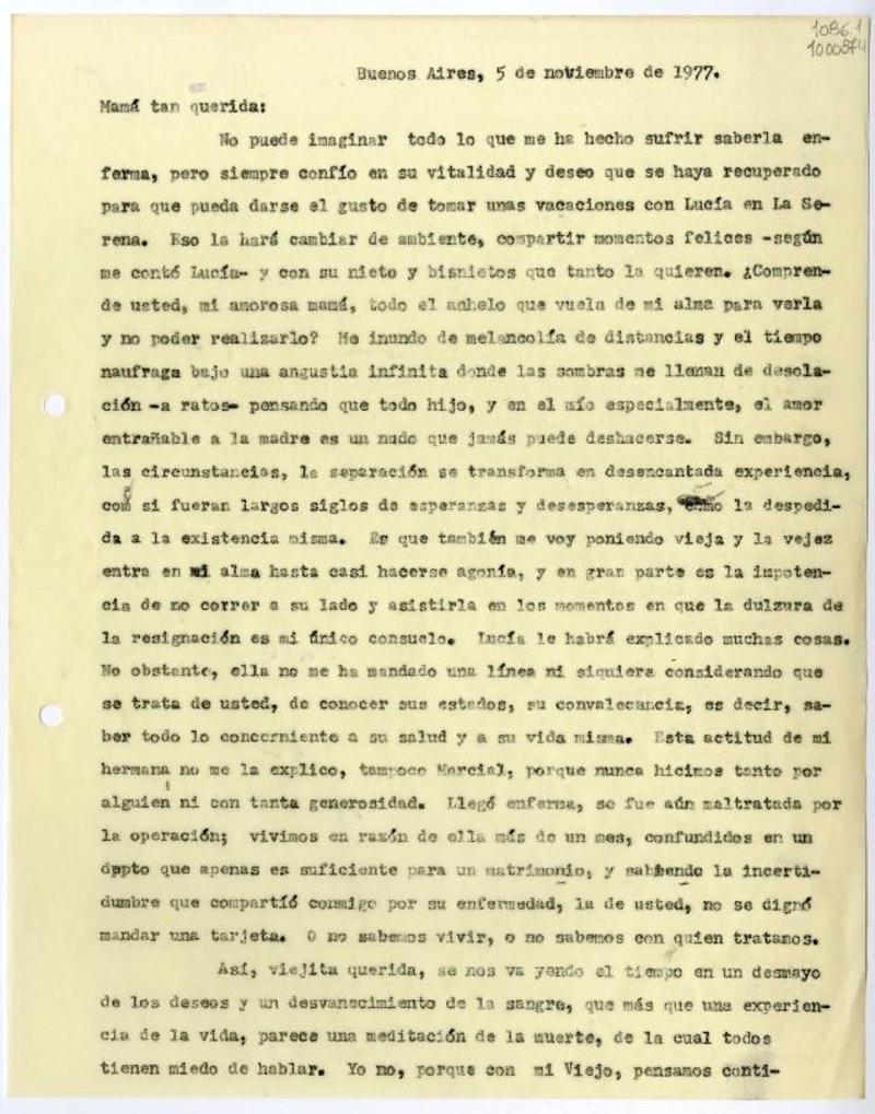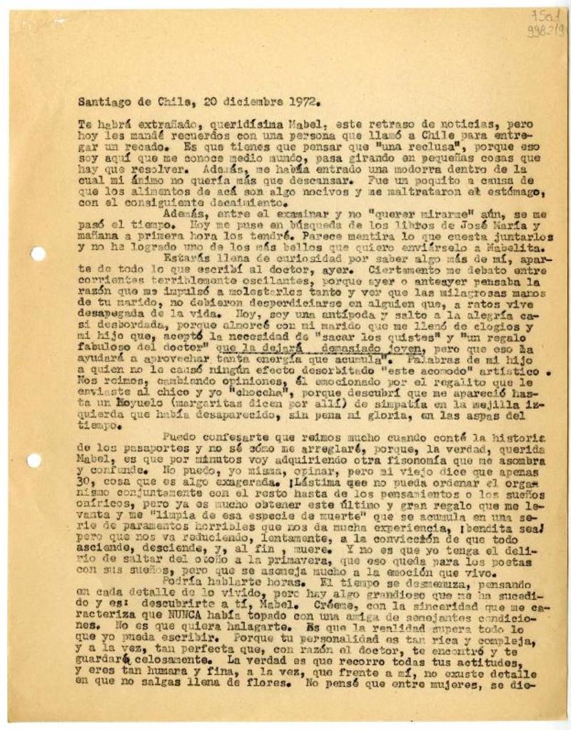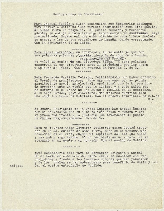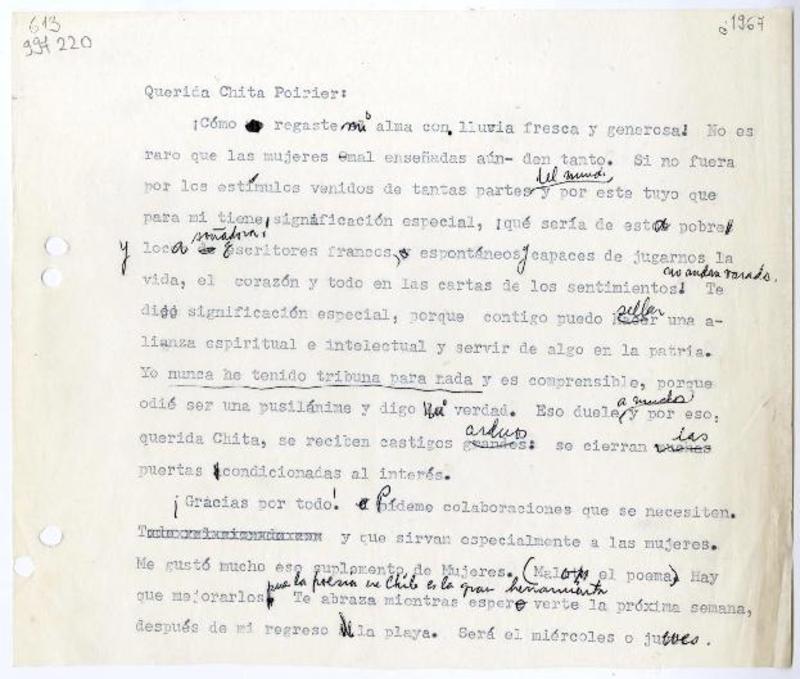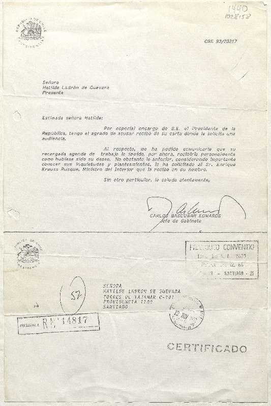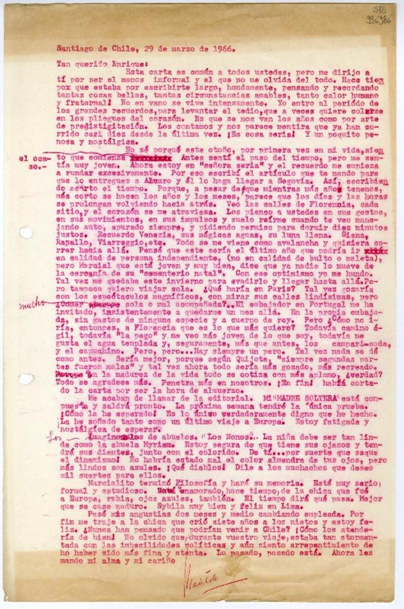 Manuscritos chilenos - Correspondencia - Autoras chilenas - Ladrón de Guevara, Matilde - Valech, Sergio