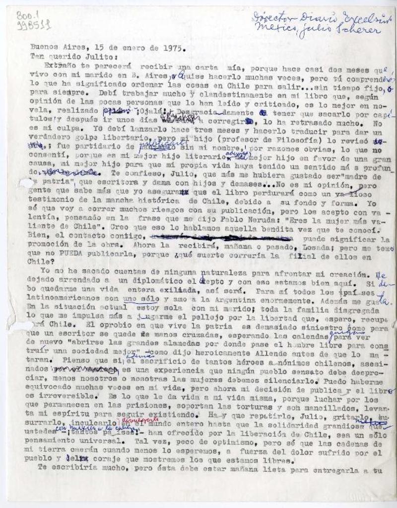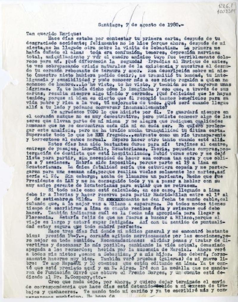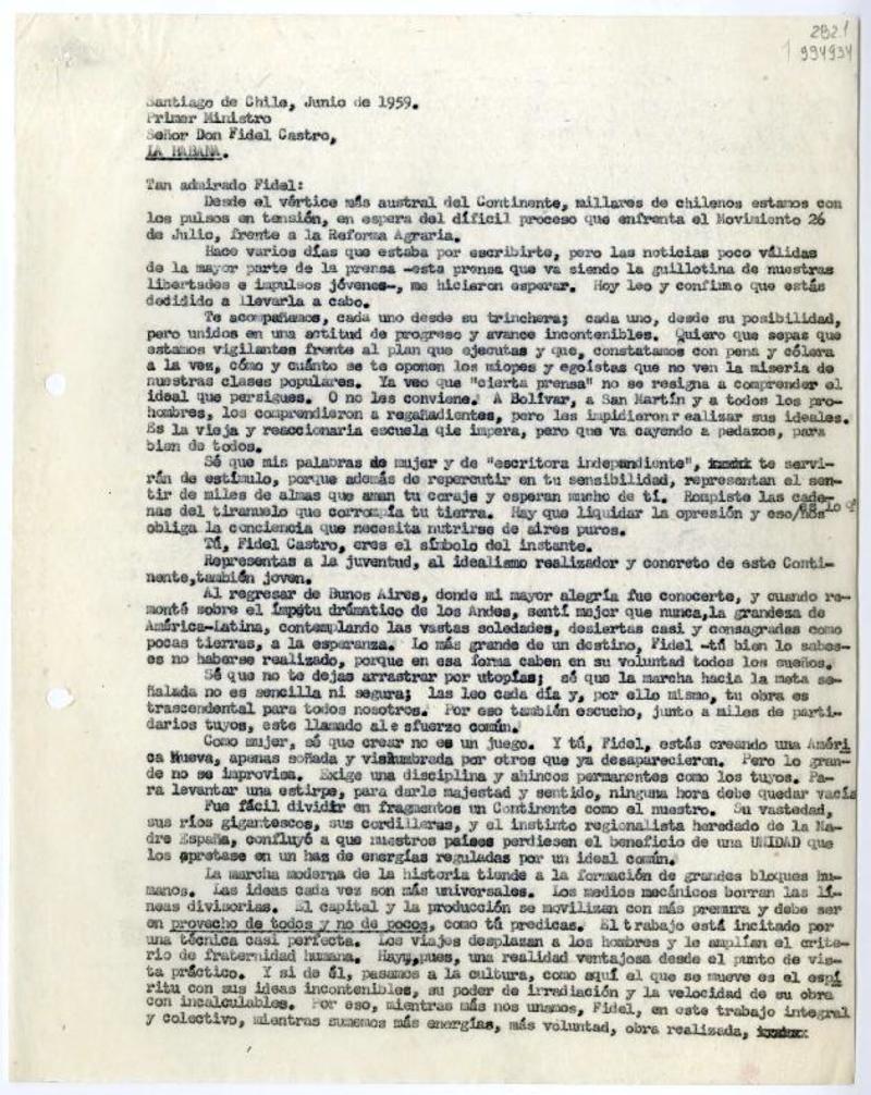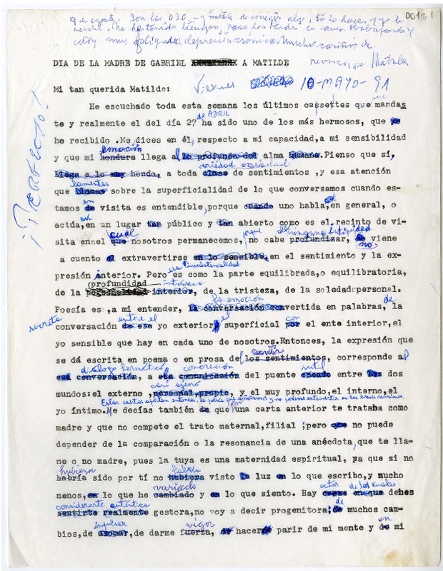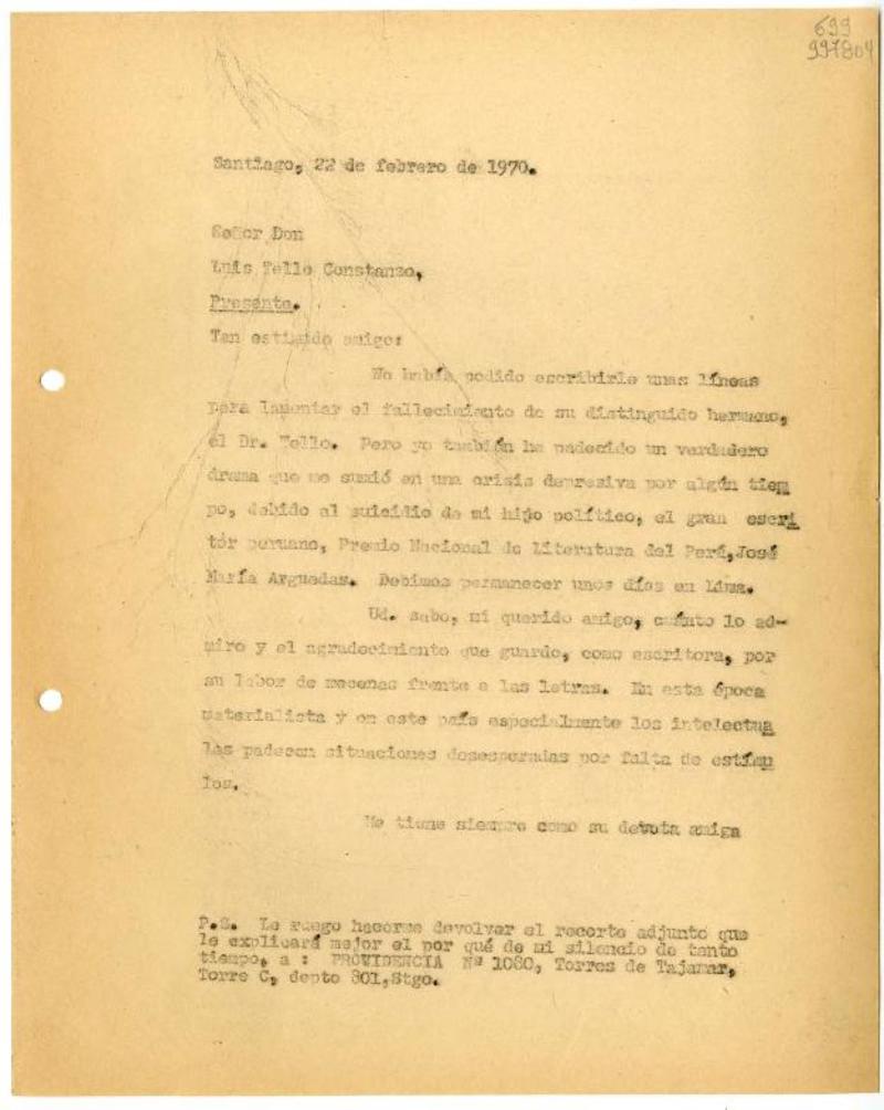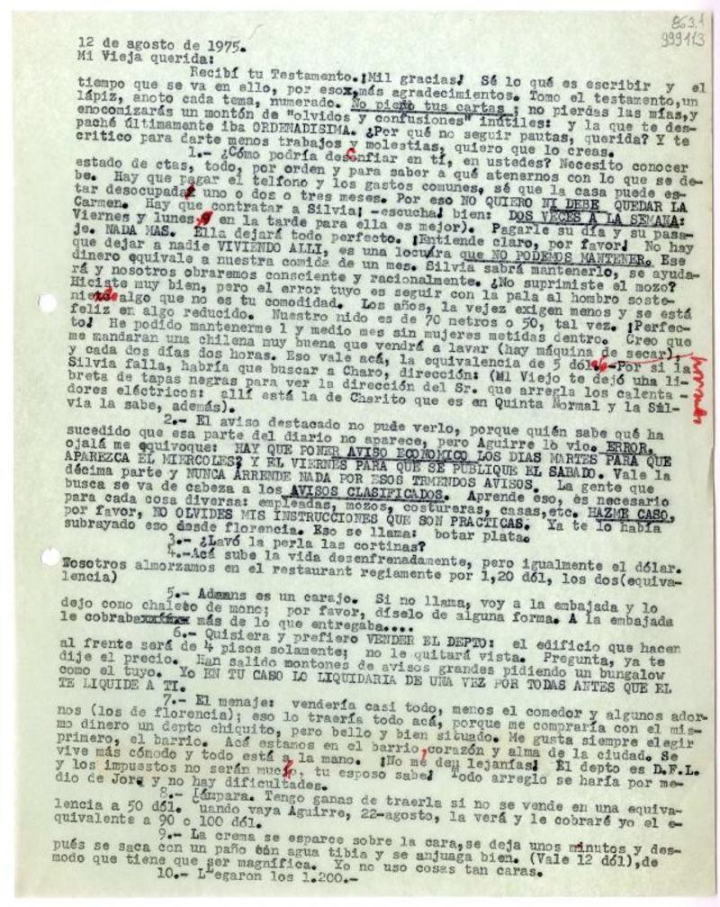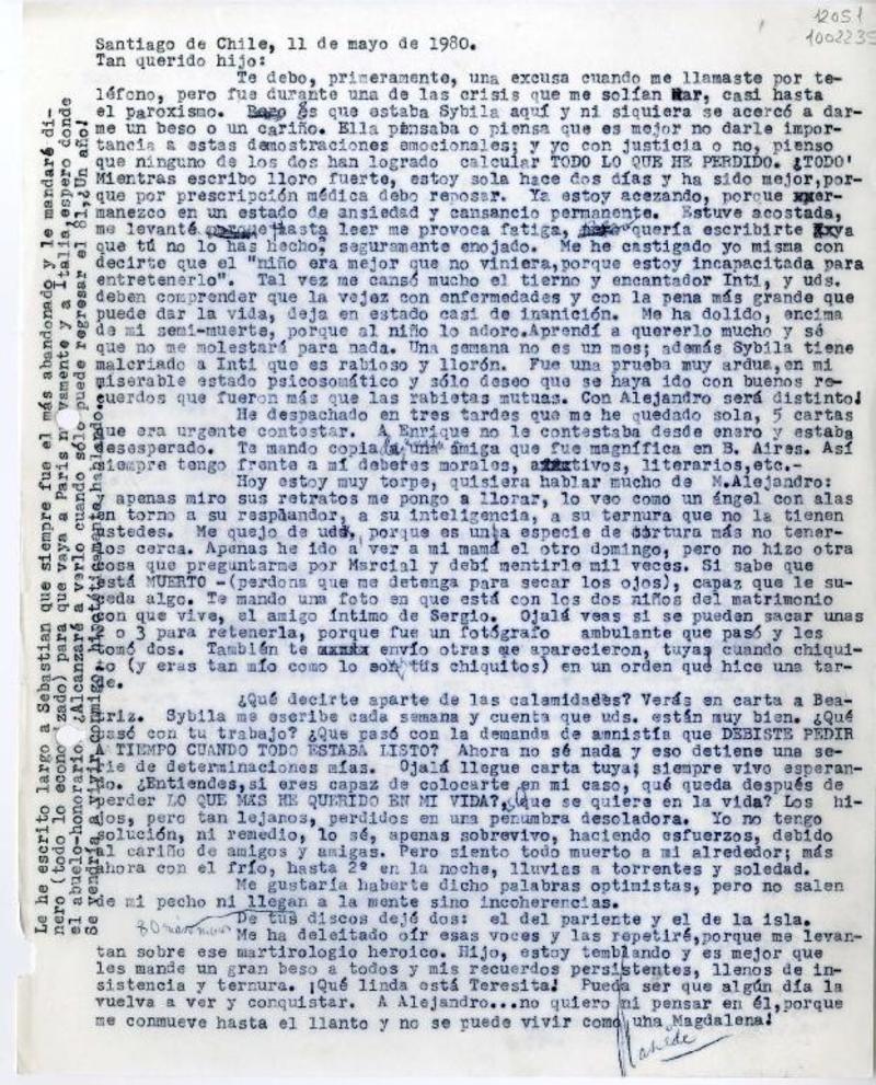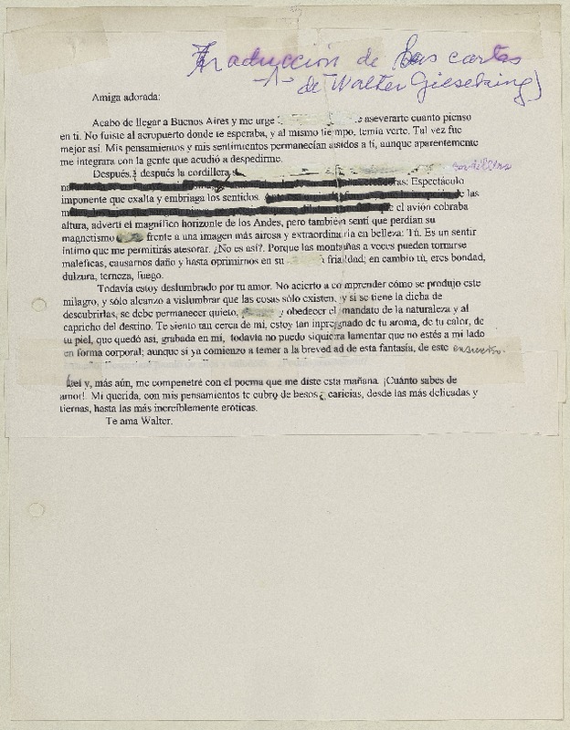 Manuscritos chilenos - Correspondencia - Autoras chilenas - Ladrón de Guevara, Matilde - Valech, Sergio