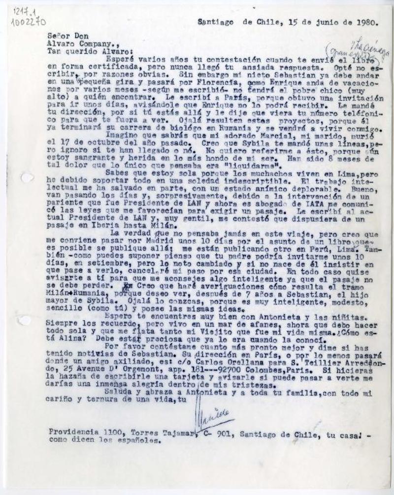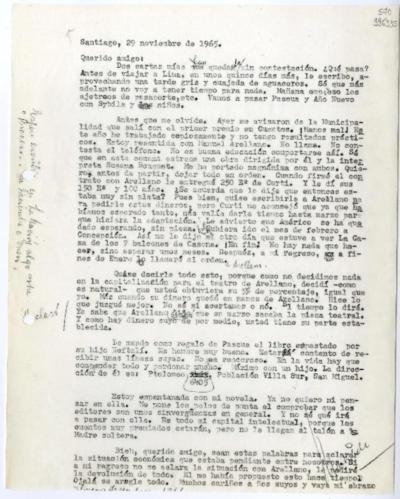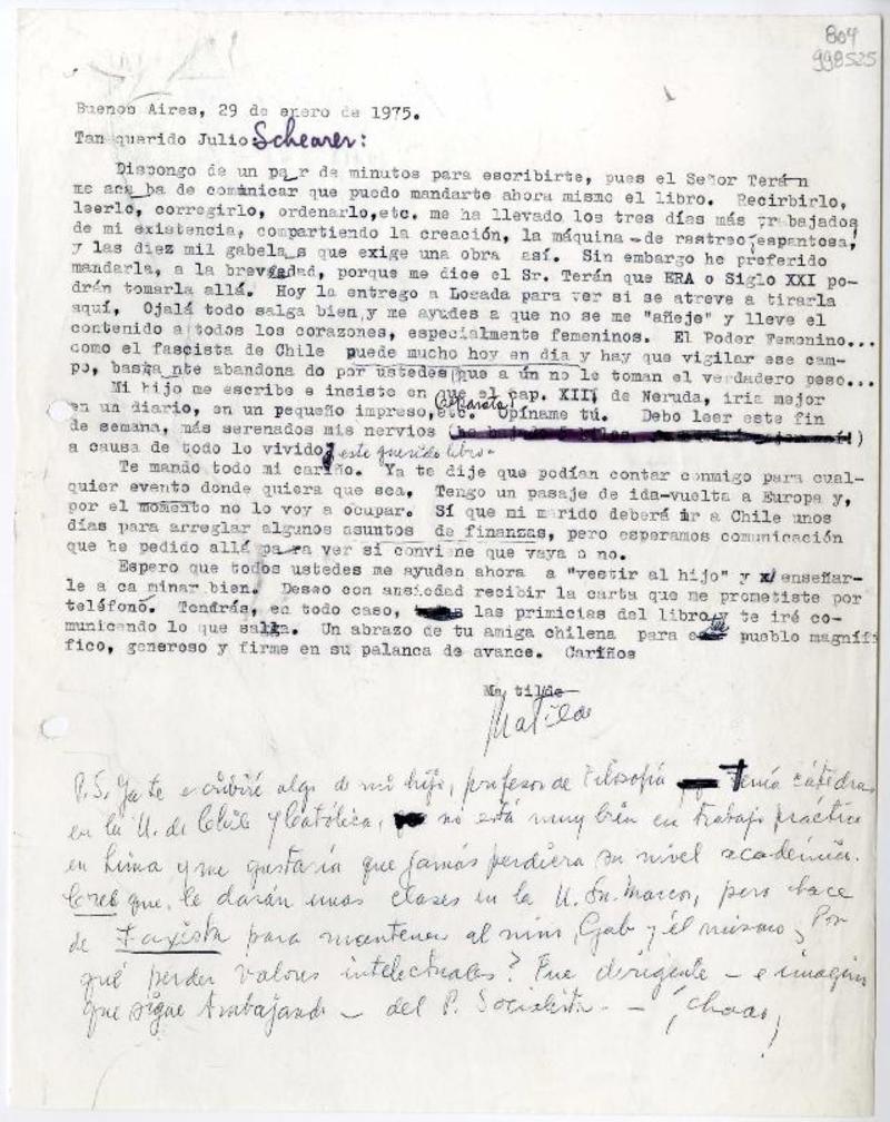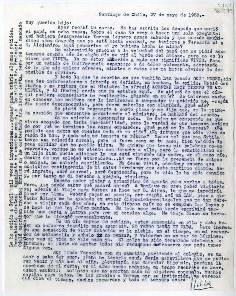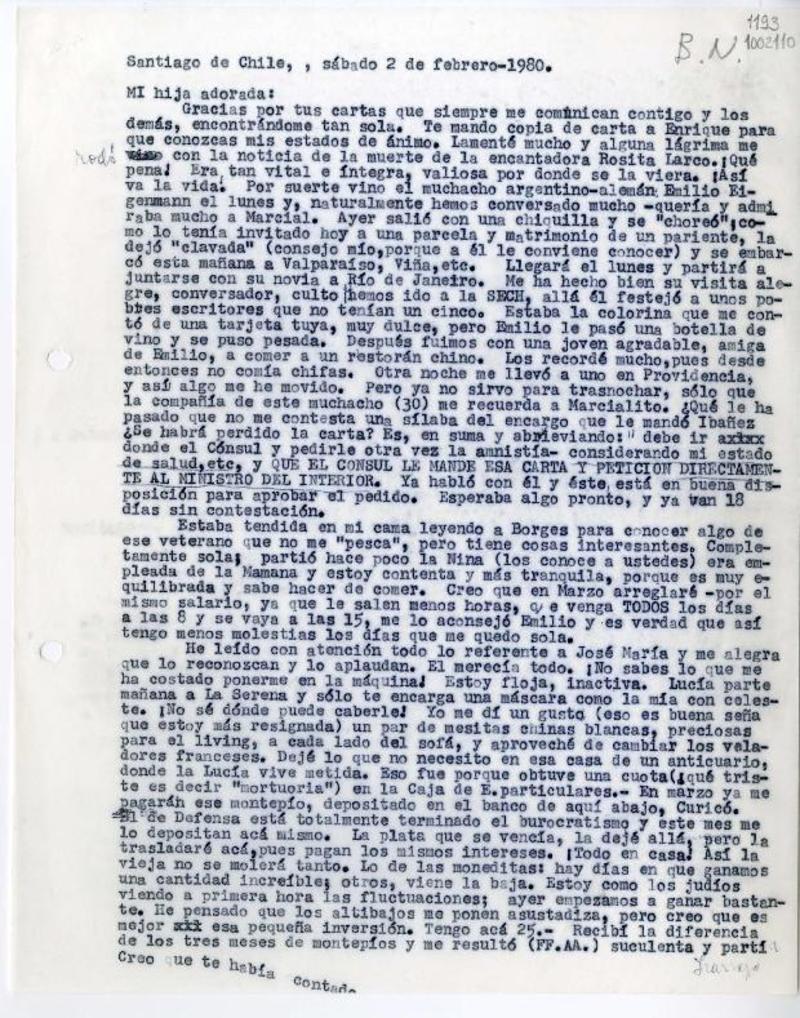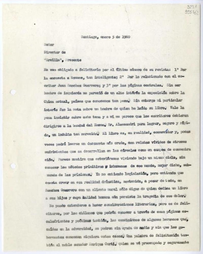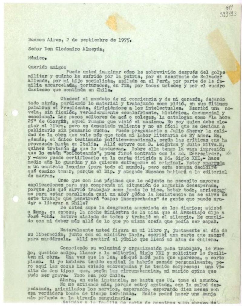 Manuscritos chilenos - Correspondencia - Autoras chilenas - Ladrón de Guevara, Matilde - Valech, Sergio
