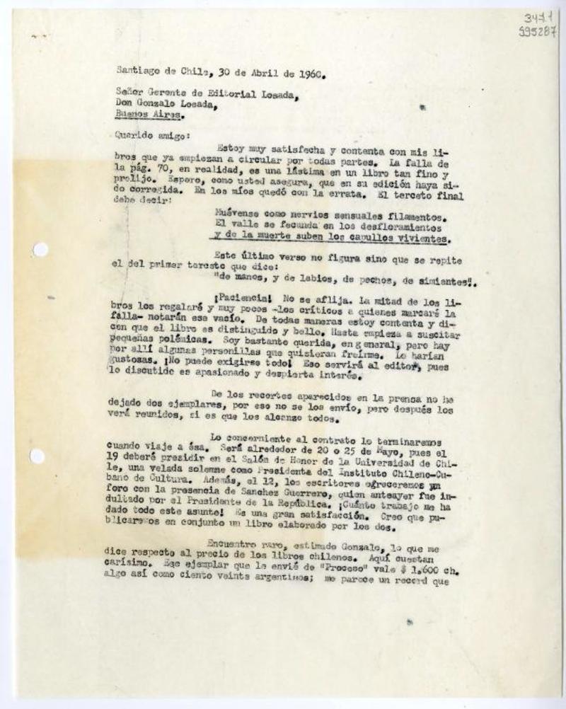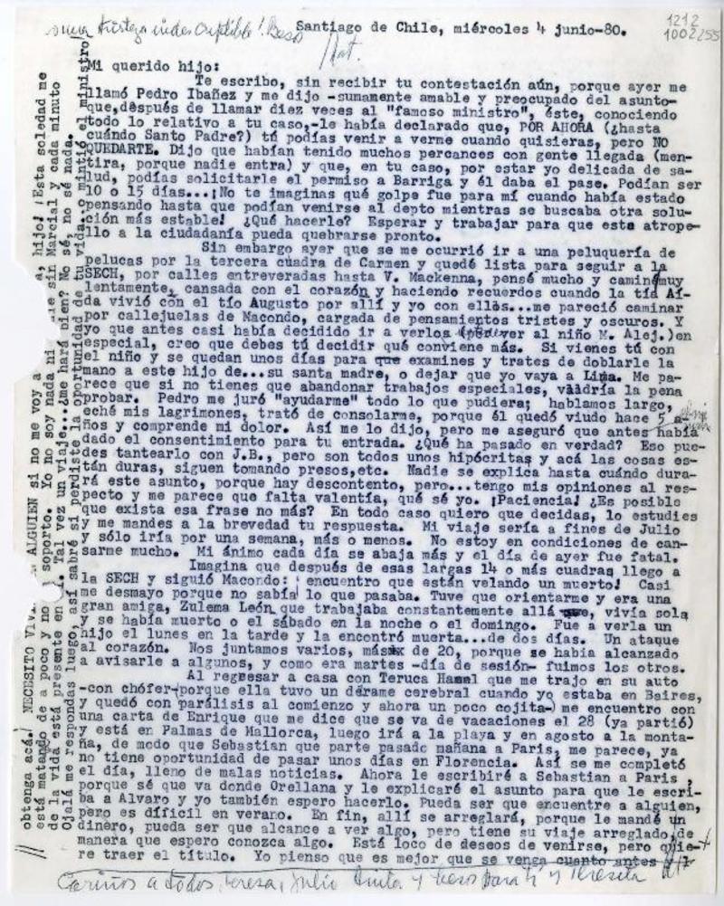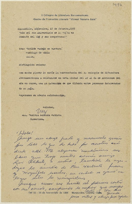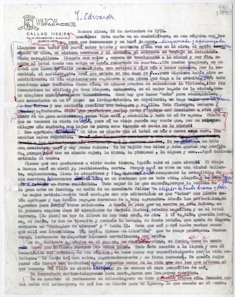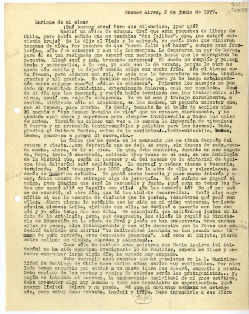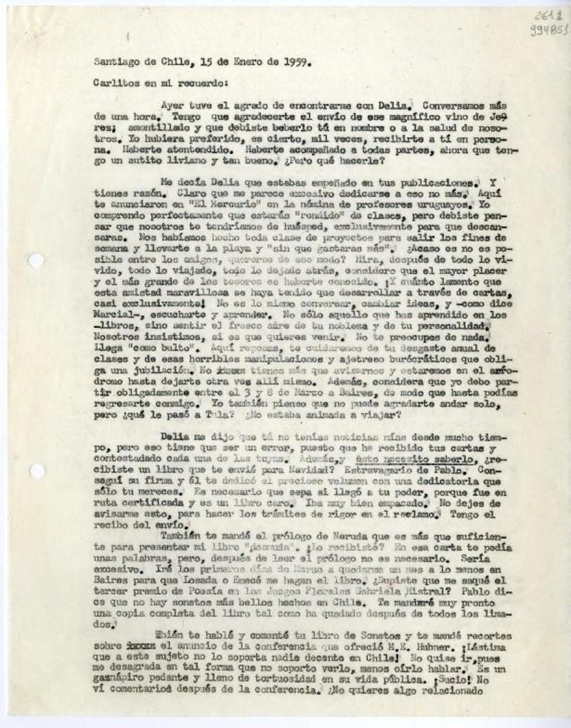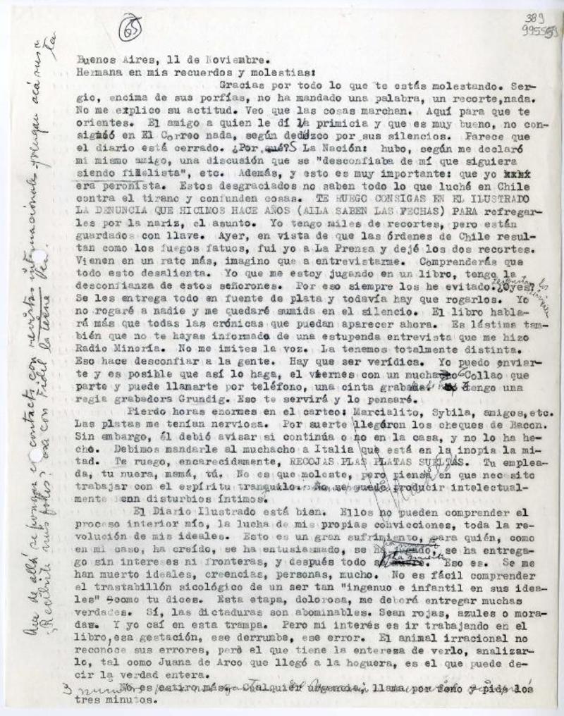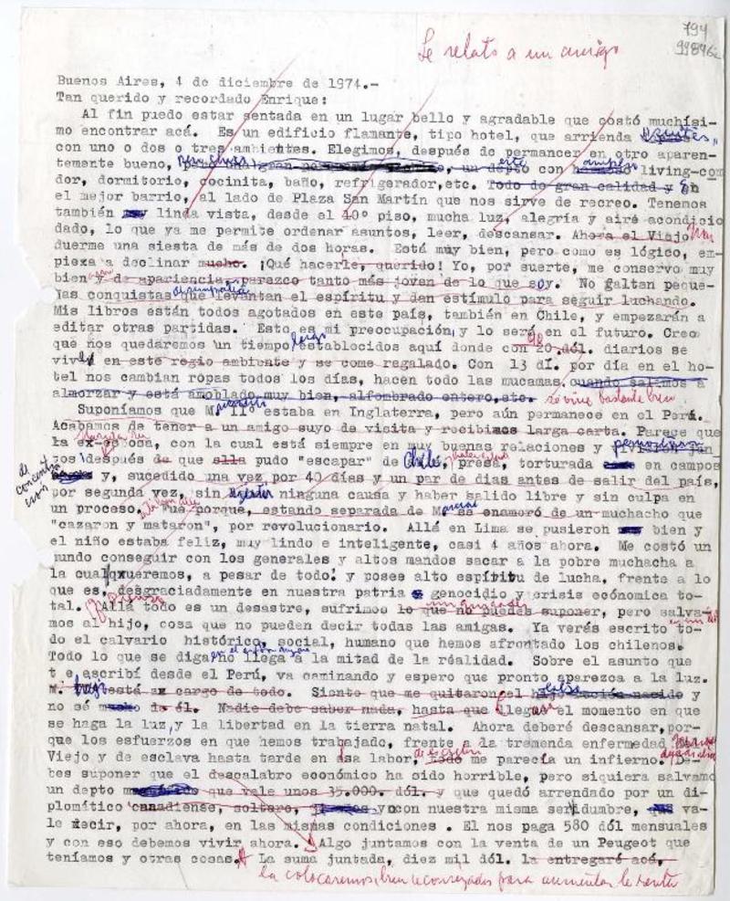 Manuscritos chilenos - Correspondencia - Autoras chilenas - Ladrón de Guevara, Matilde - Valech, Sergio