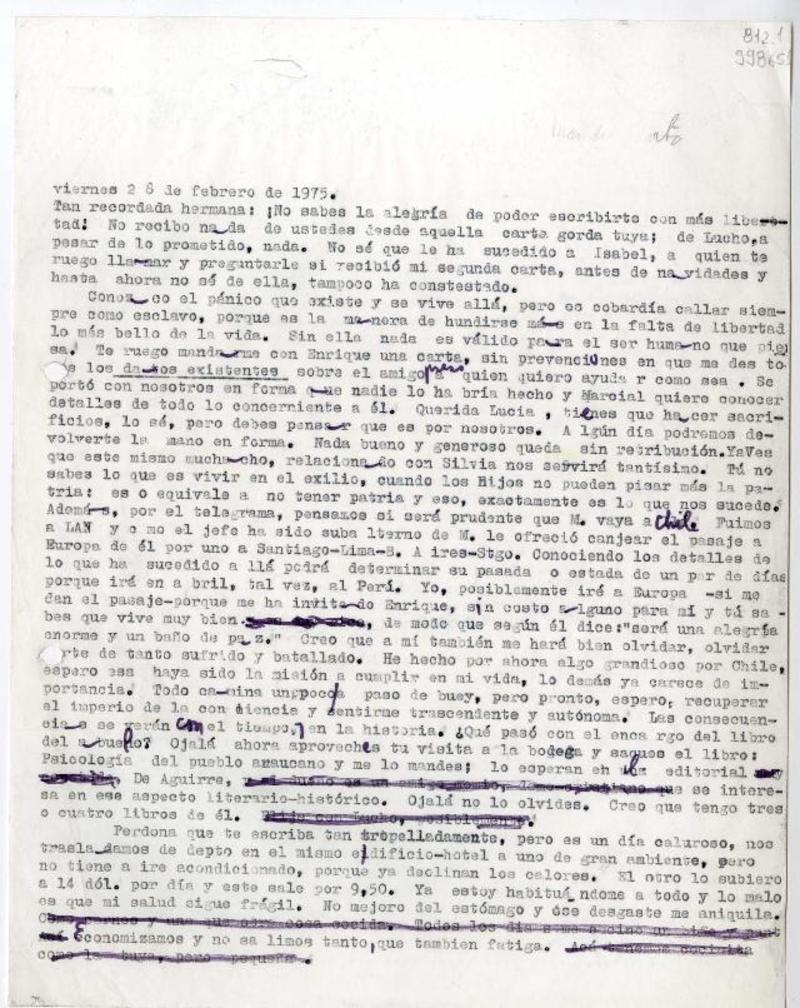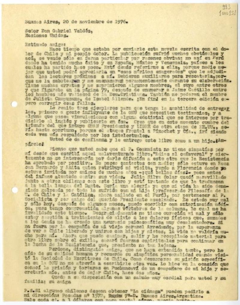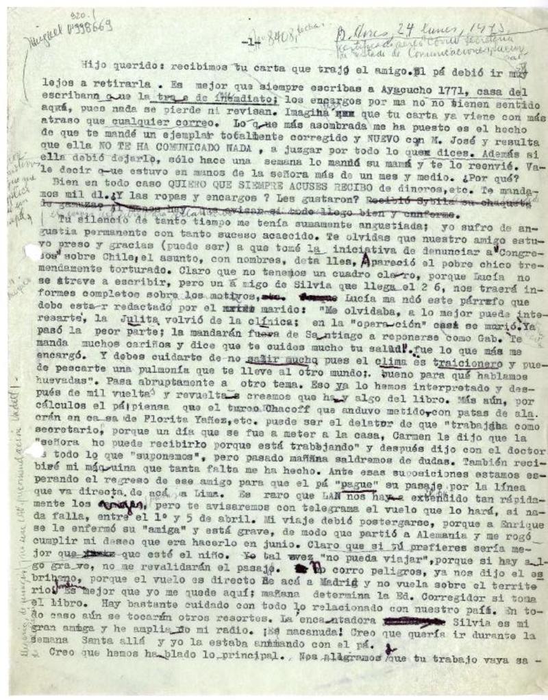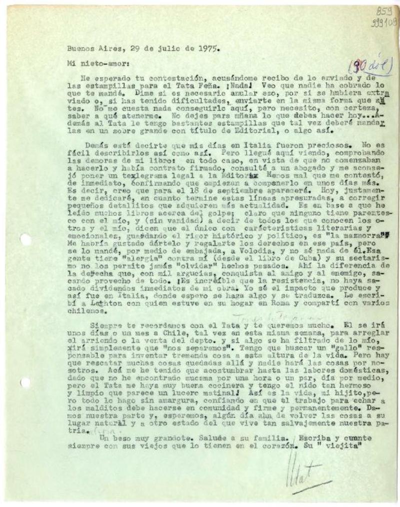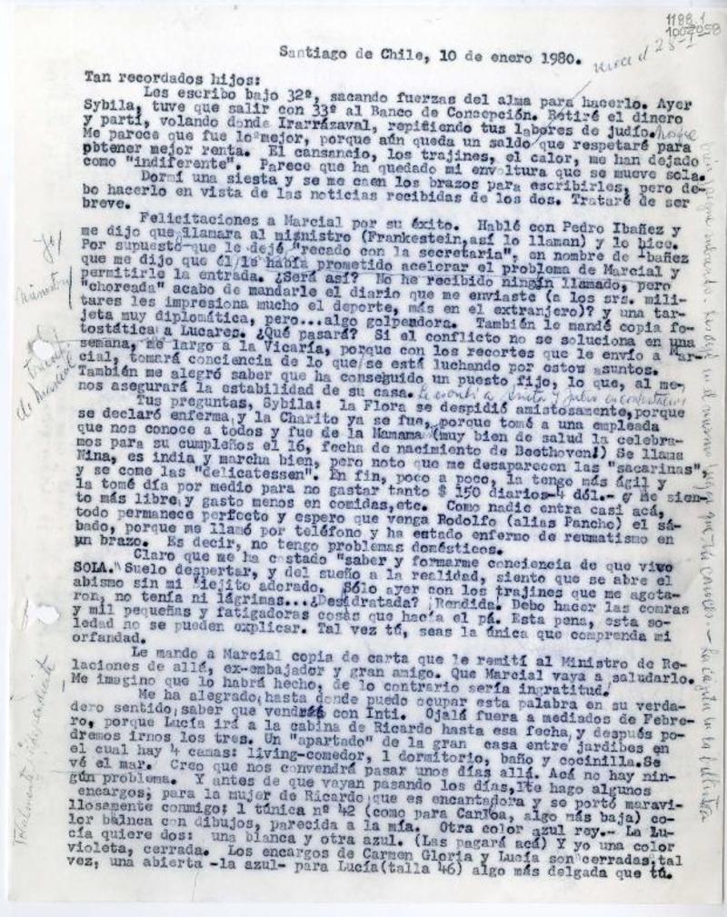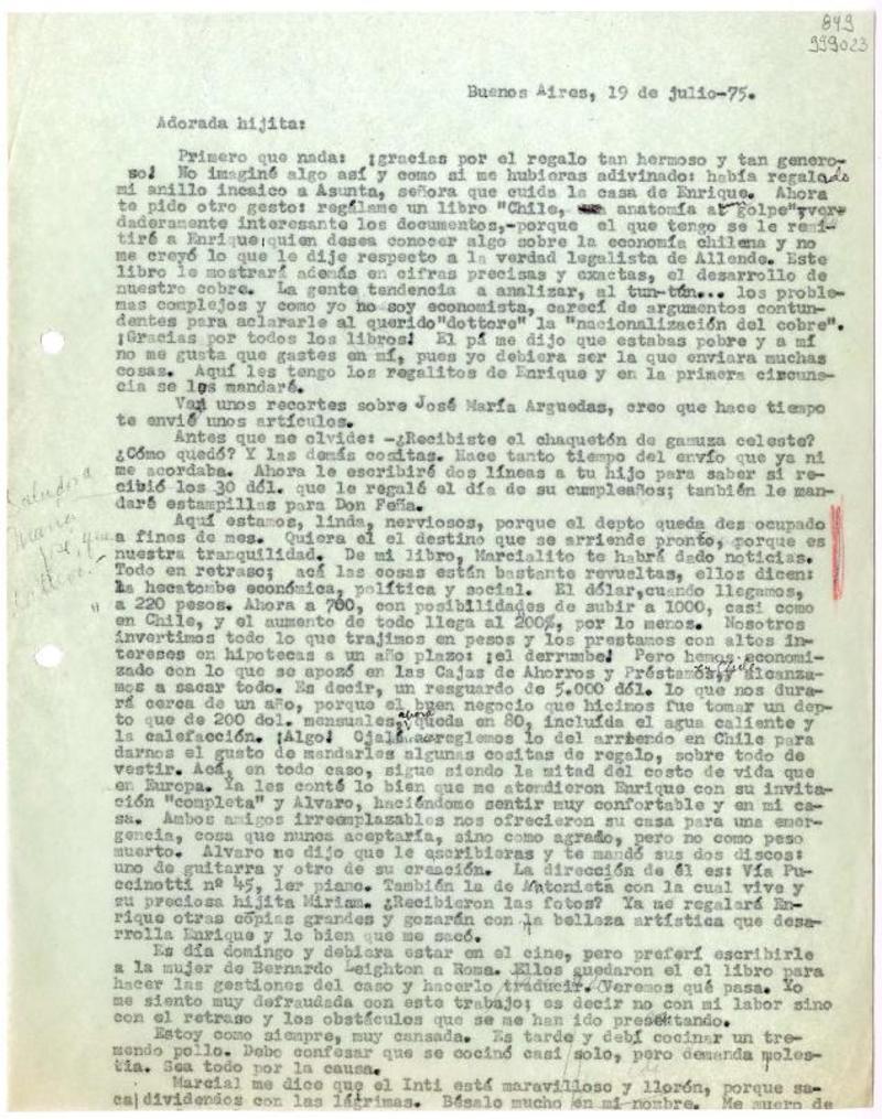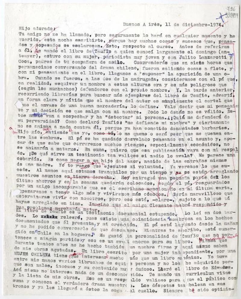 Manuscritos chilenos - Correspondencia - Autoras chilenas - Ladrón de Guevara, Matilde - Valech, Sergio