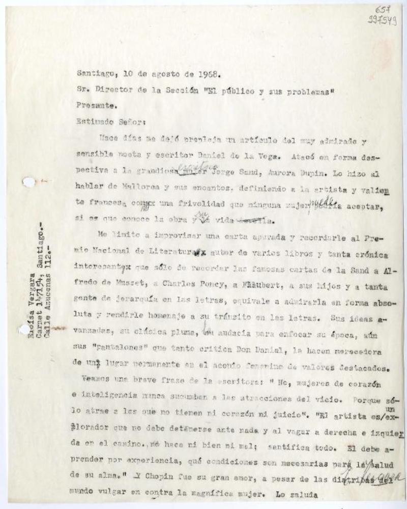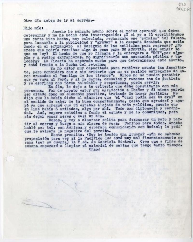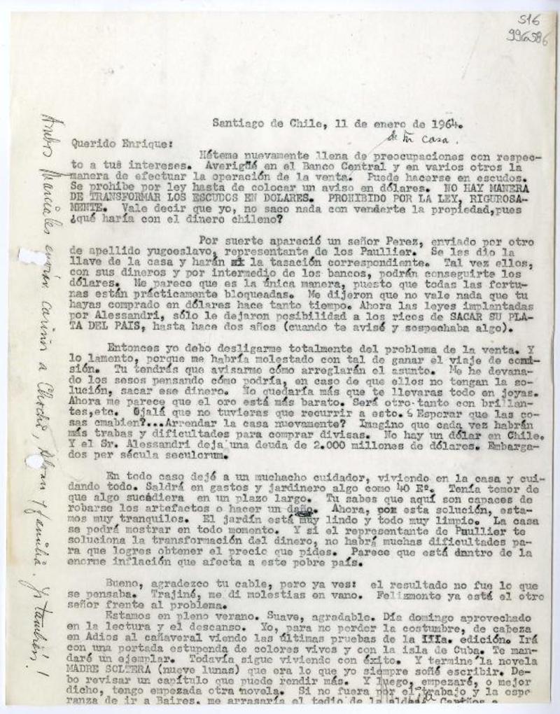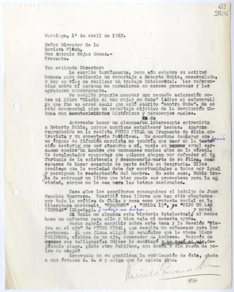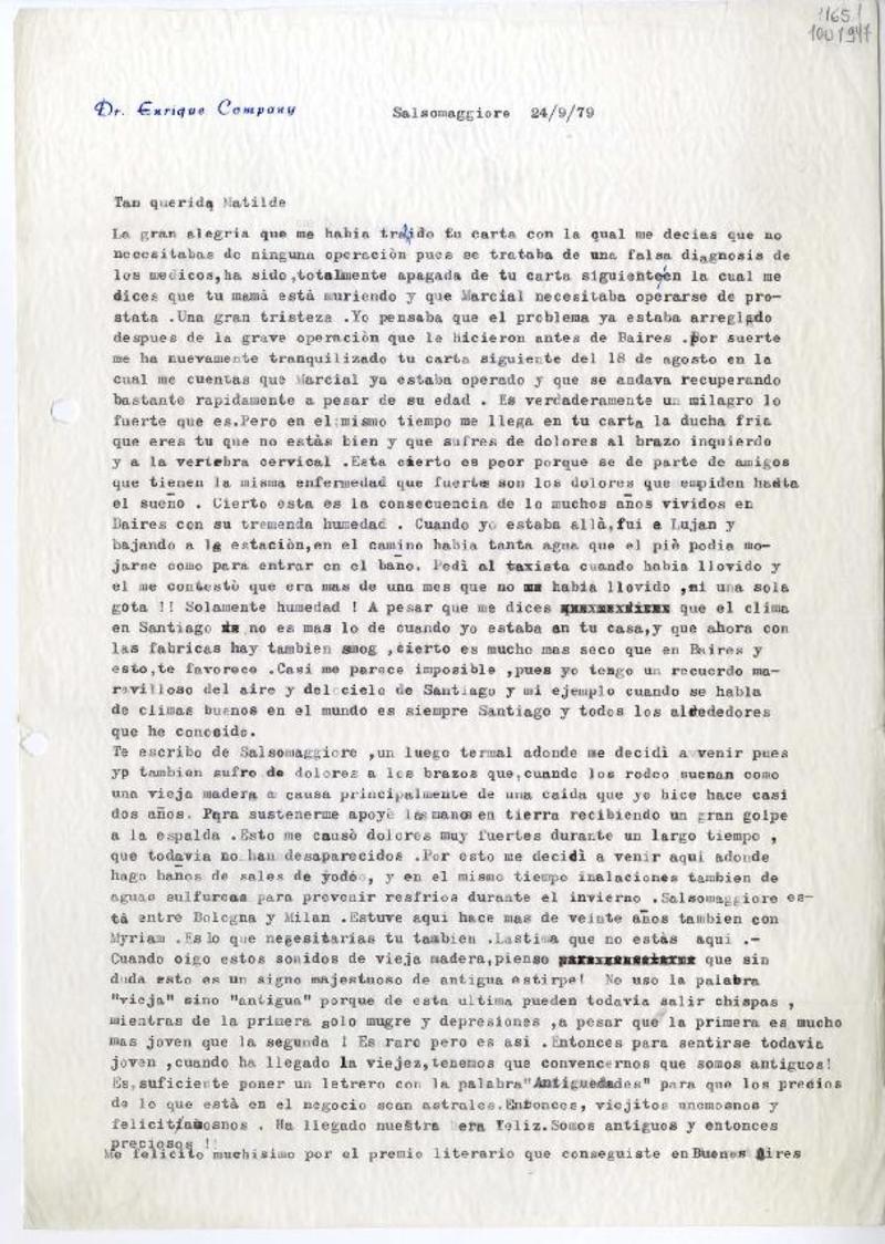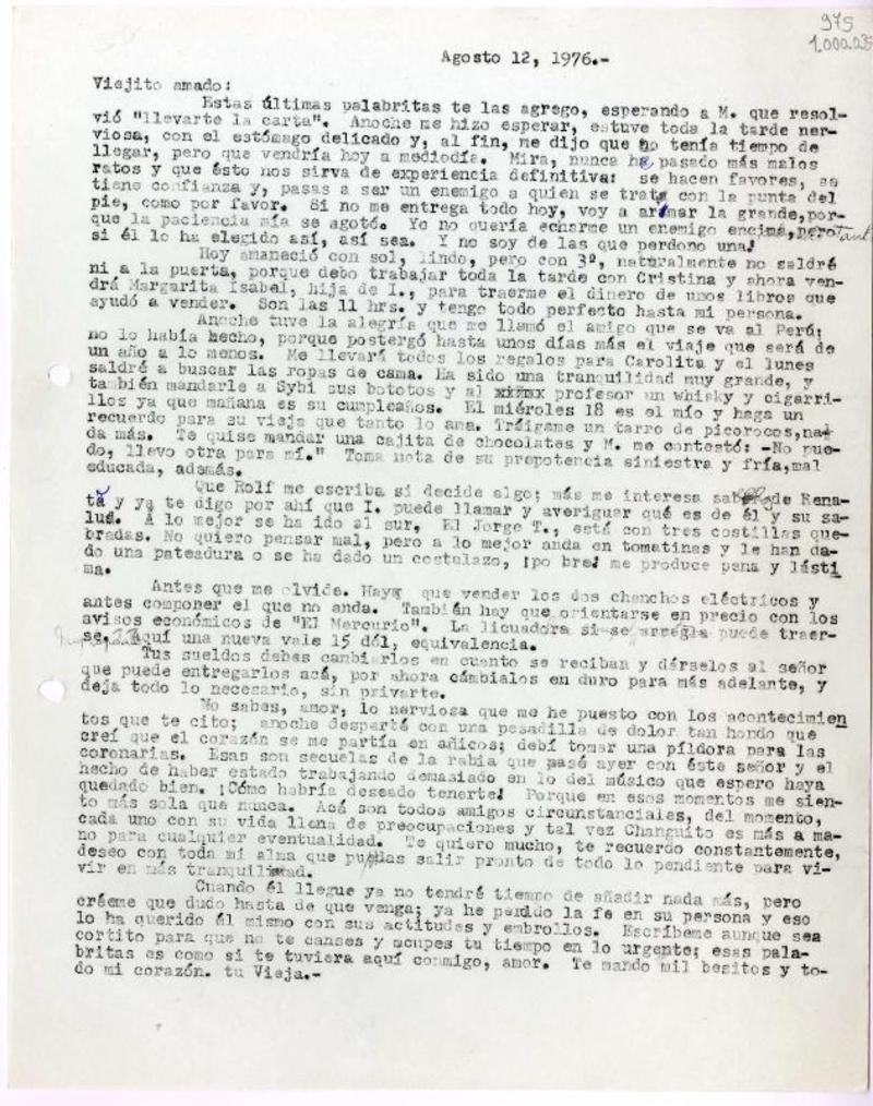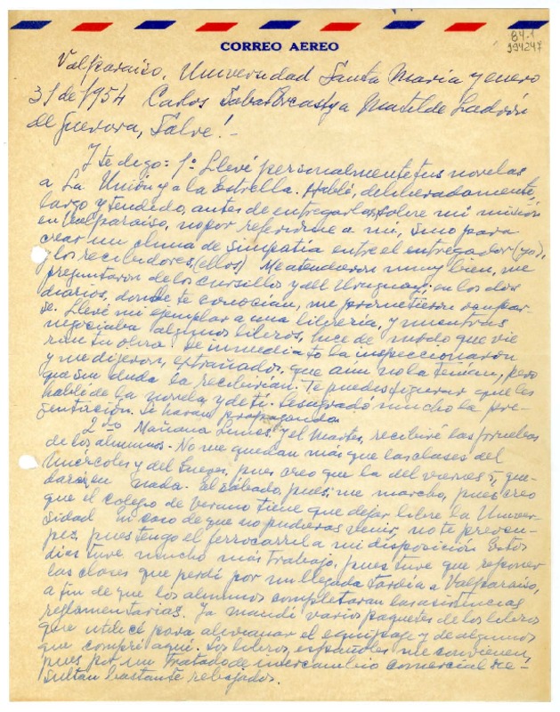 Manuscritos chilenos - Correspondencia - Autoras chilenas - Ladrón de Guevara, Matilde - Valech, Sergio