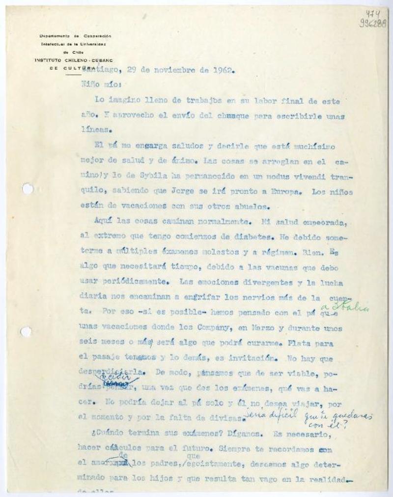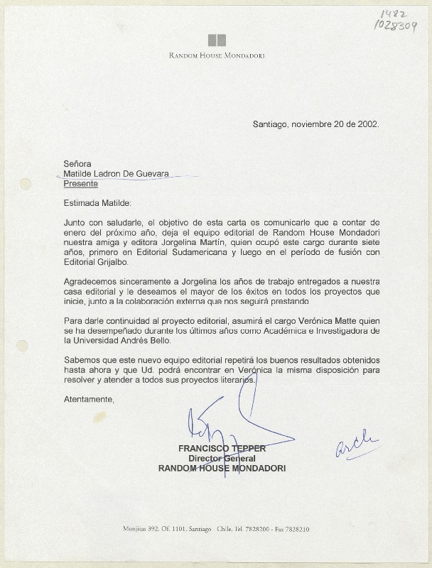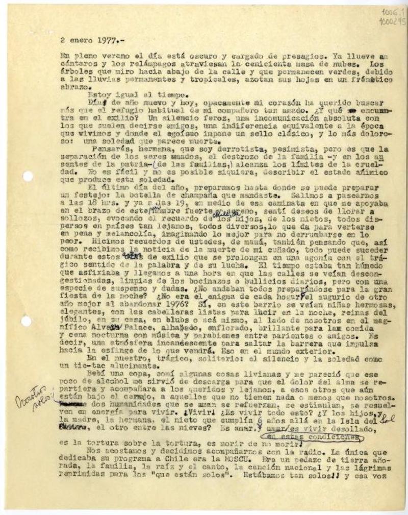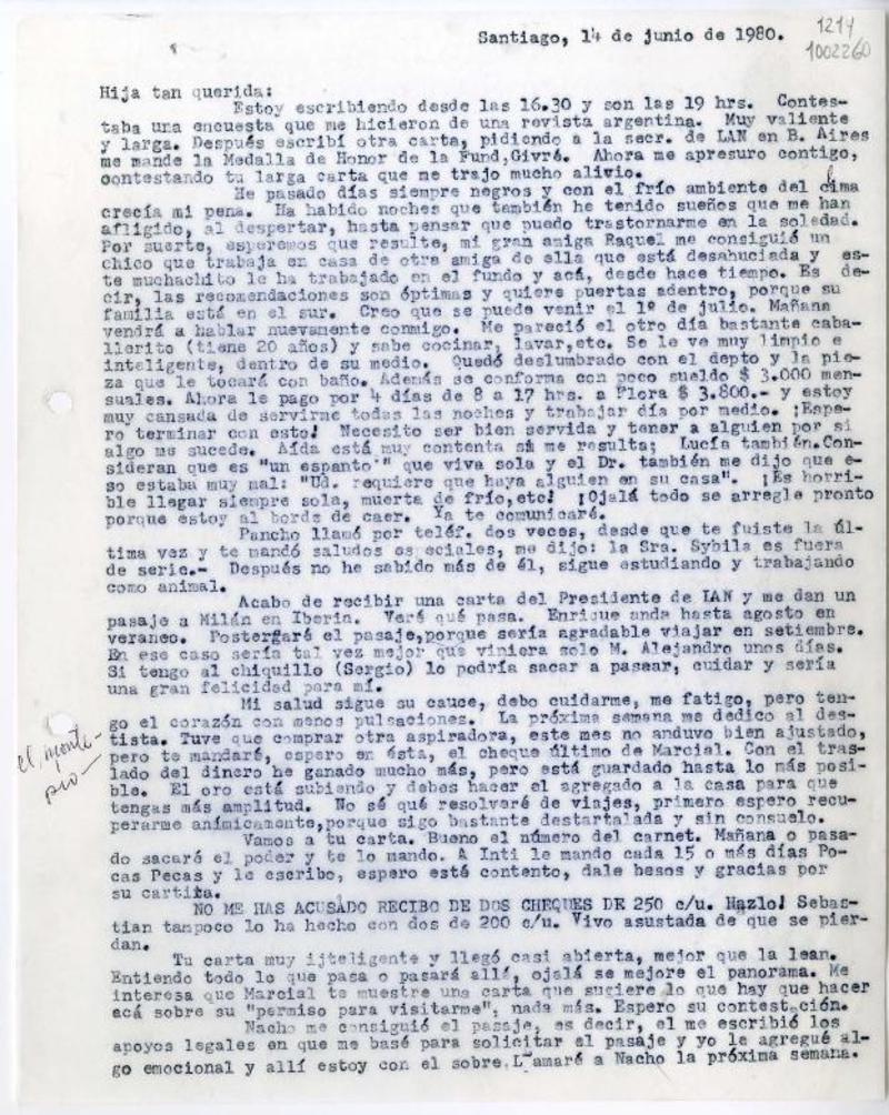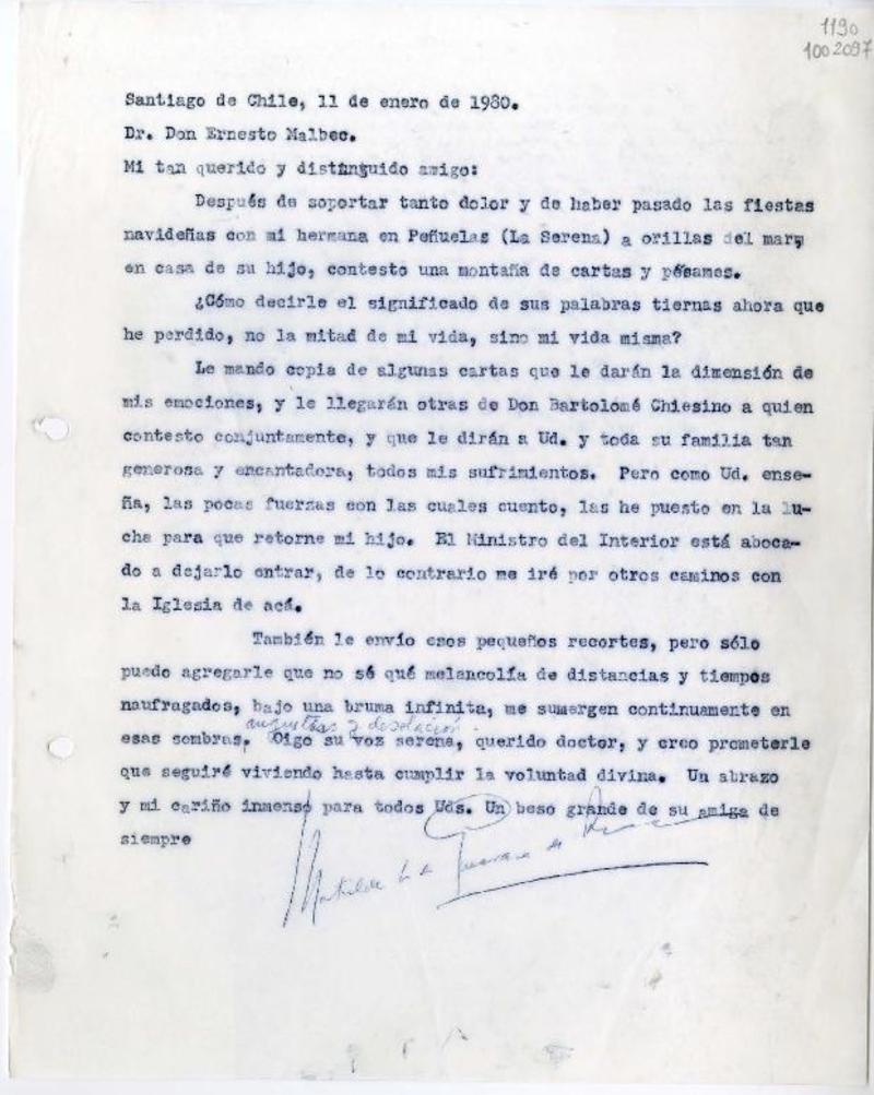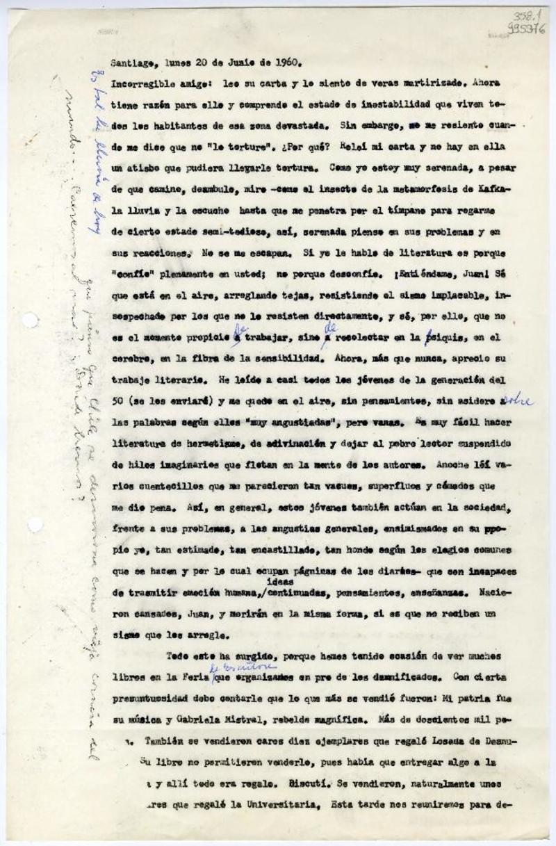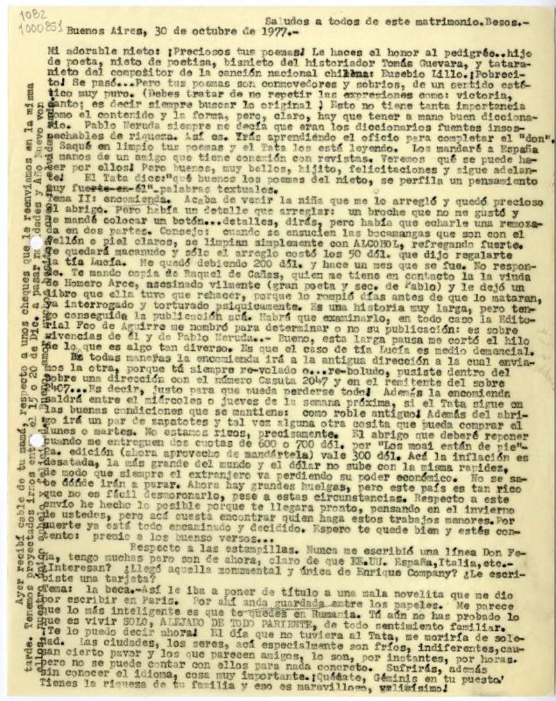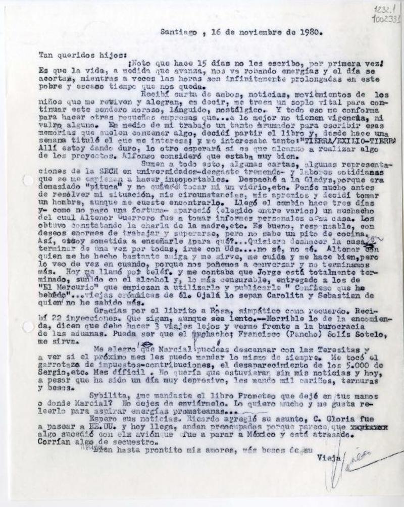 Manuscritos chilenos - Correspondencia - Autoras chilenas - Ladrón de Guevara, Matilde - Valech, Sergio