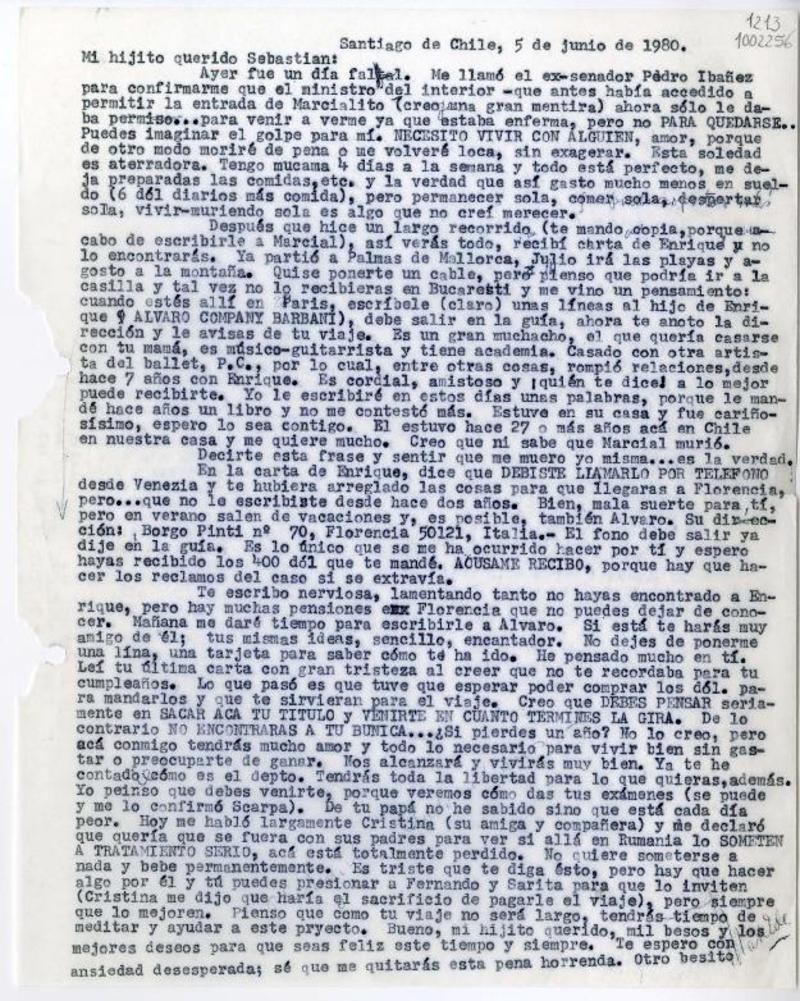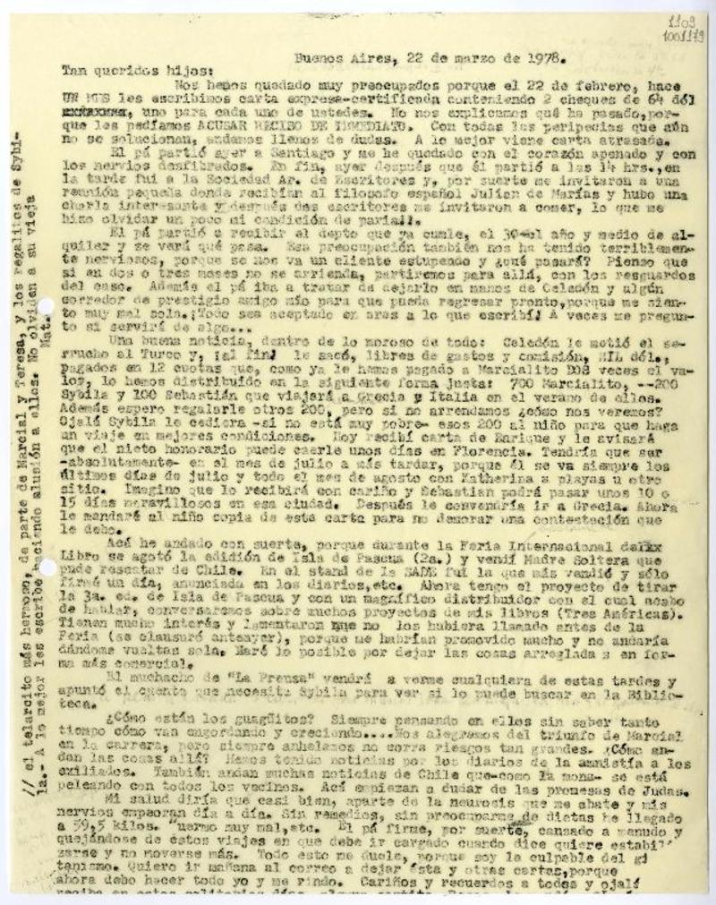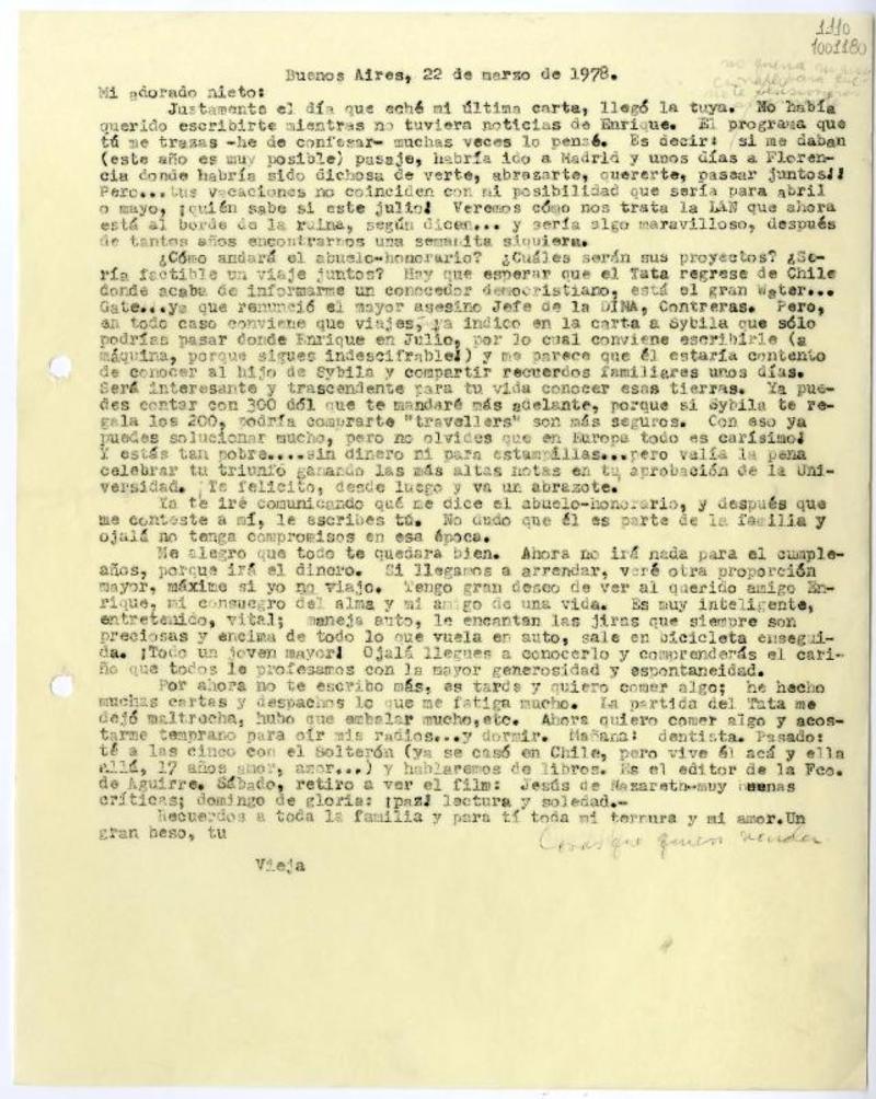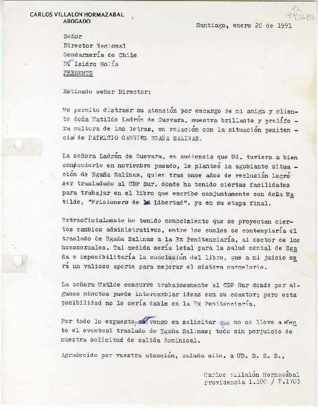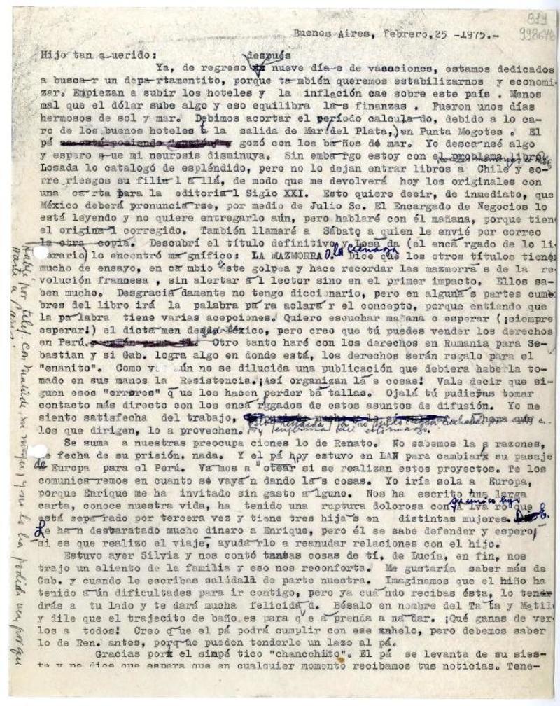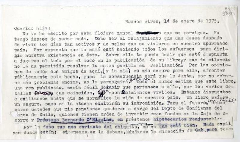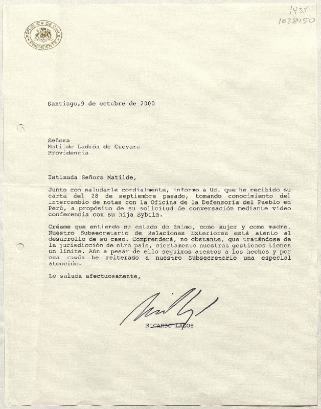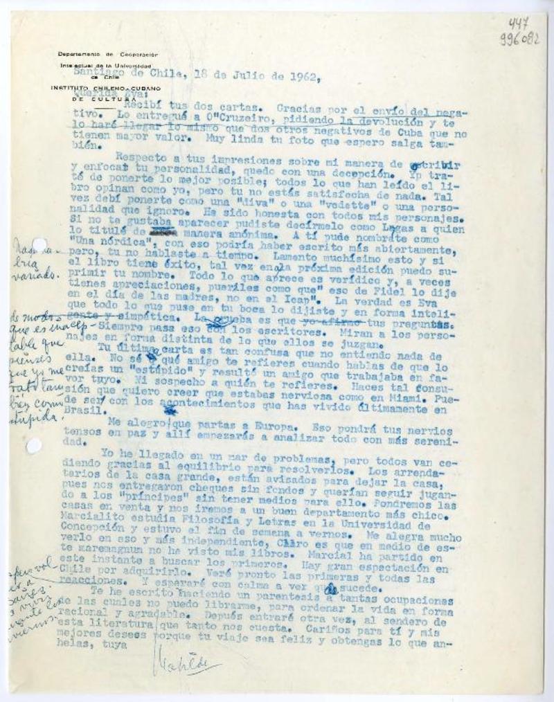 Manuscritos chilenos - Correspondencia - Autoras chilenas - Ladrón de Guevara, Matilde - Valech, Sergio