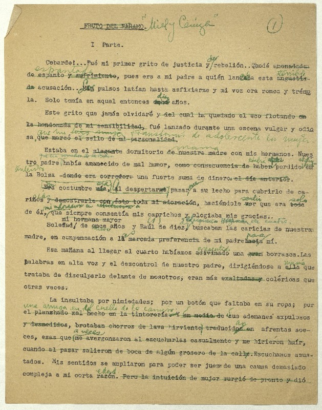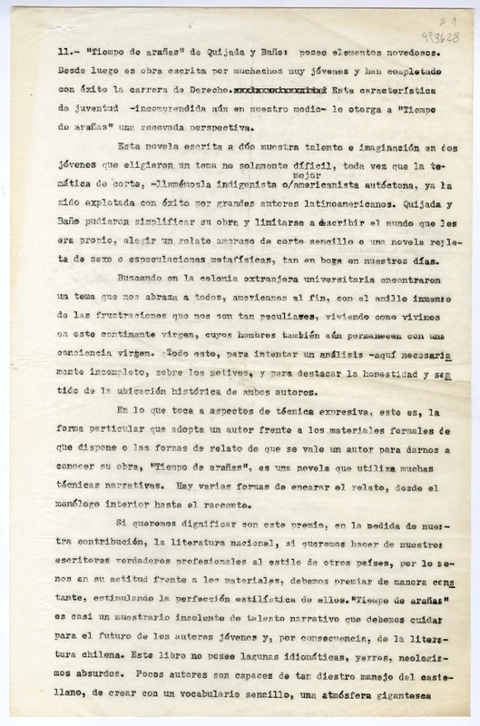 "Tiempo de arañas" de Quijada y Baño [manuscrito] [Matilde Ladrón de Guevara].