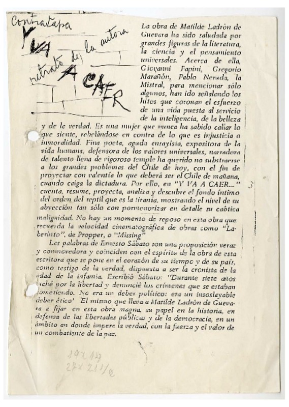 Sabat Ercasty [manuscrito] Matilde Ladrón de Guevara.