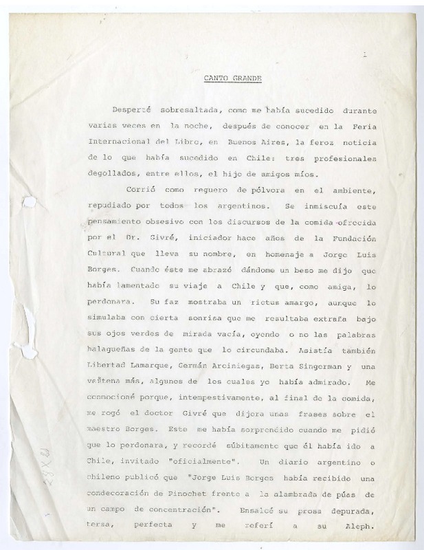 Canto Grande [manuscrito] Matilde Ladrón de Guevara.