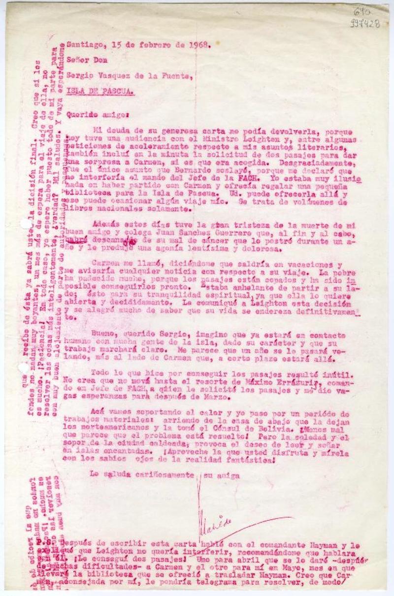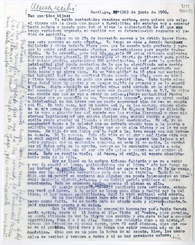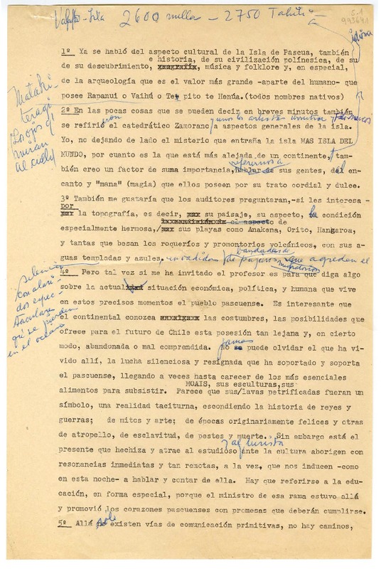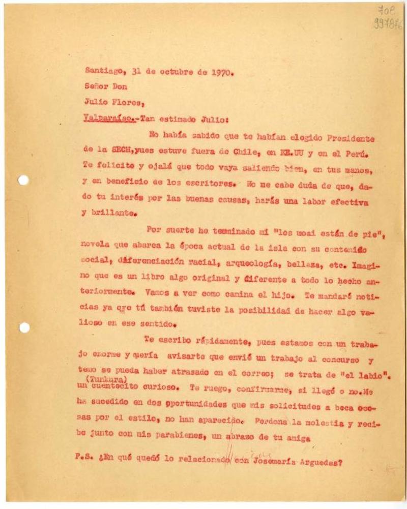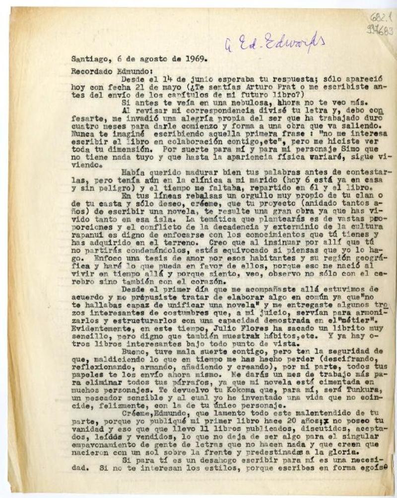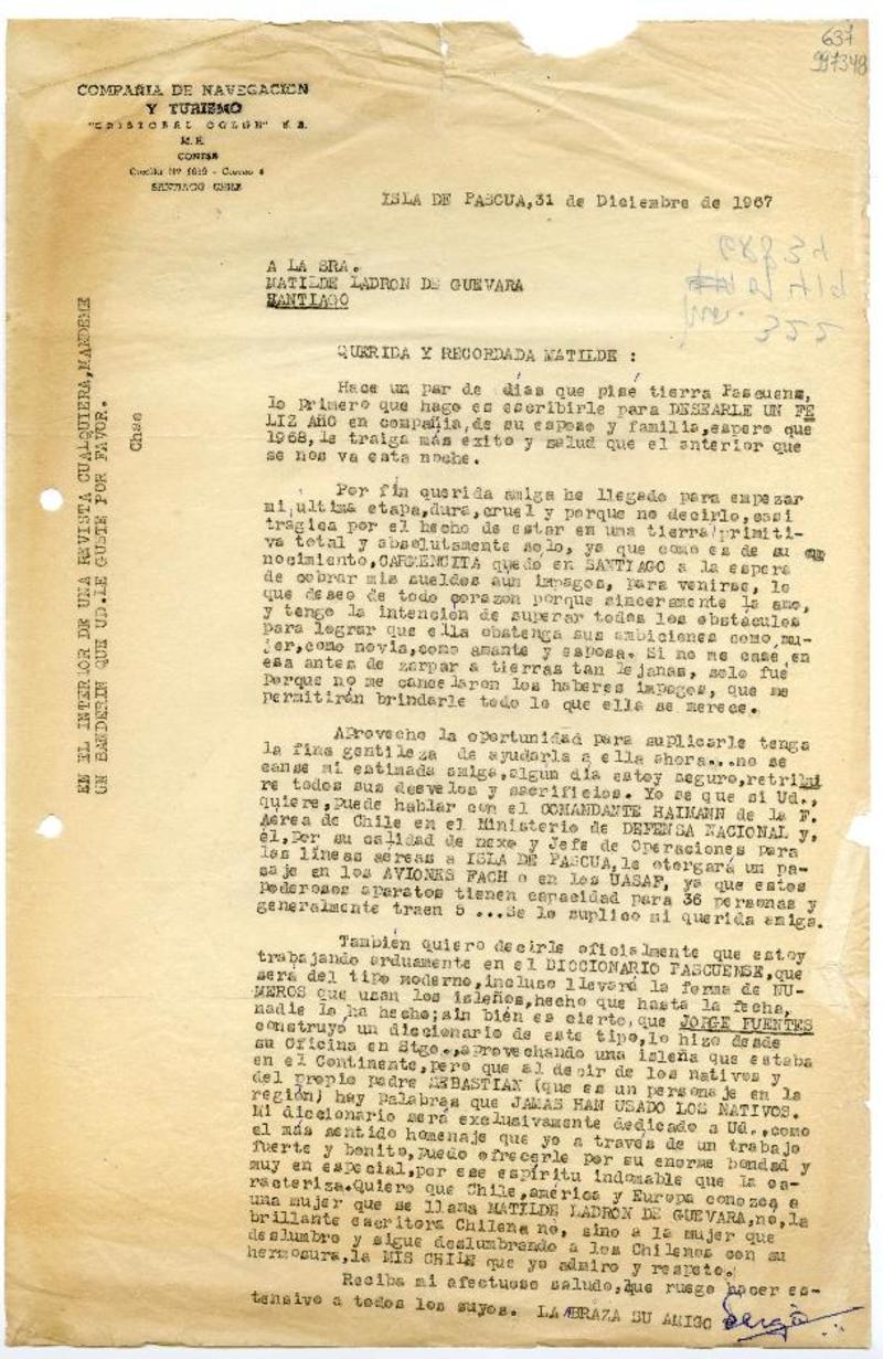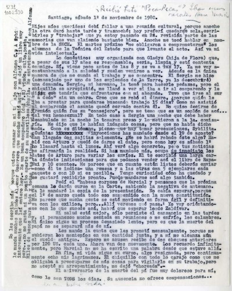 Rapu Haoa, Sergio - Manuscritos chilenos - Correspondencia
