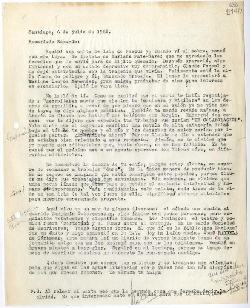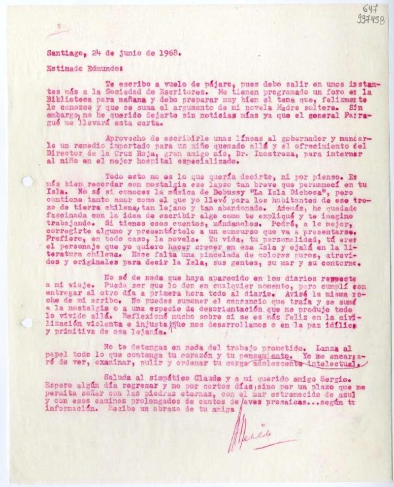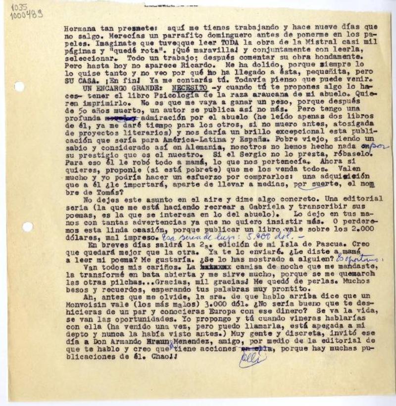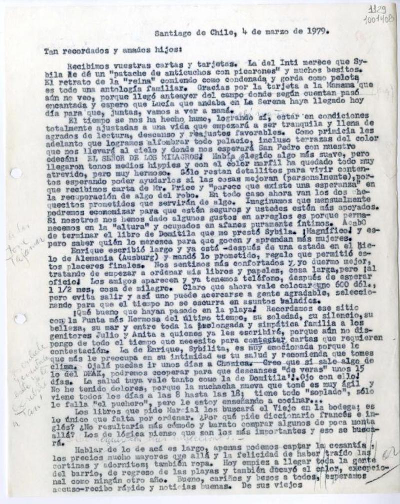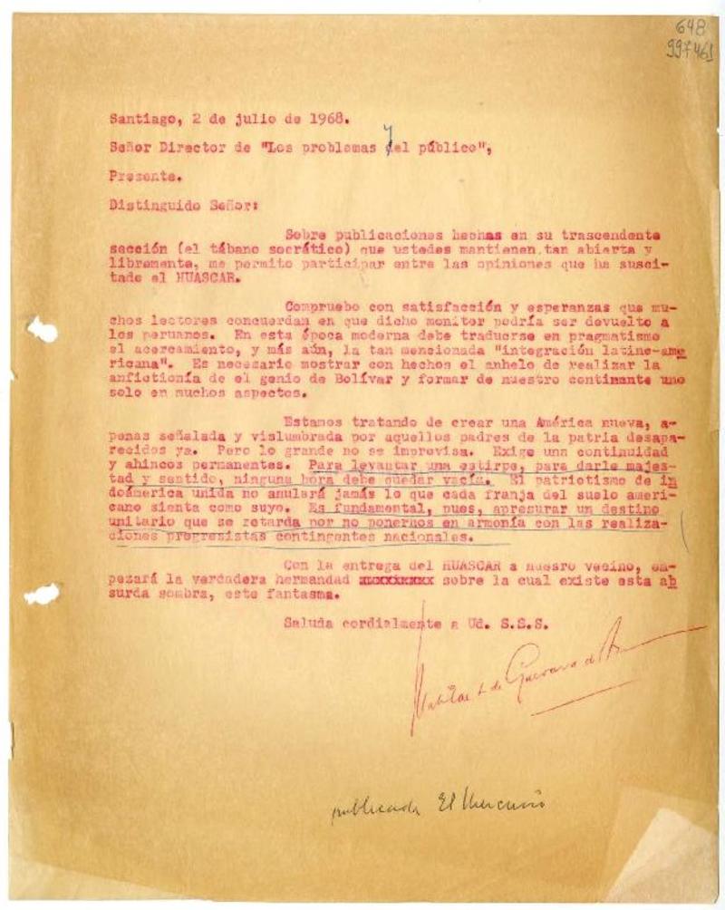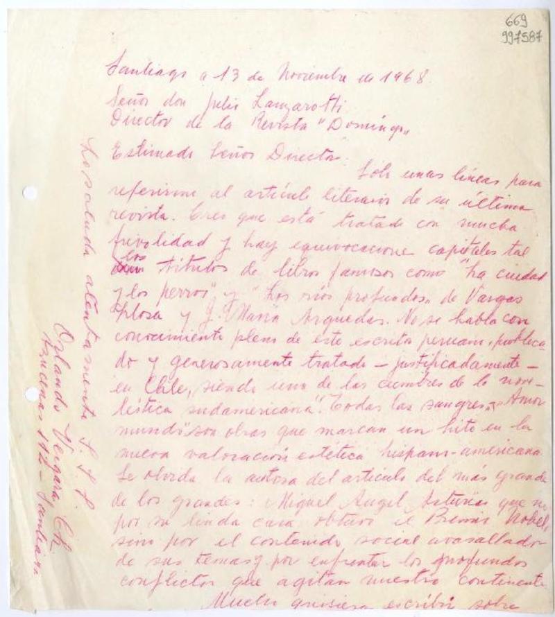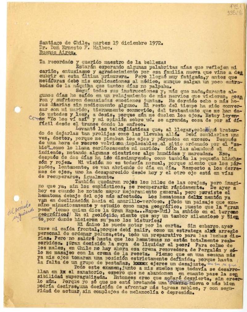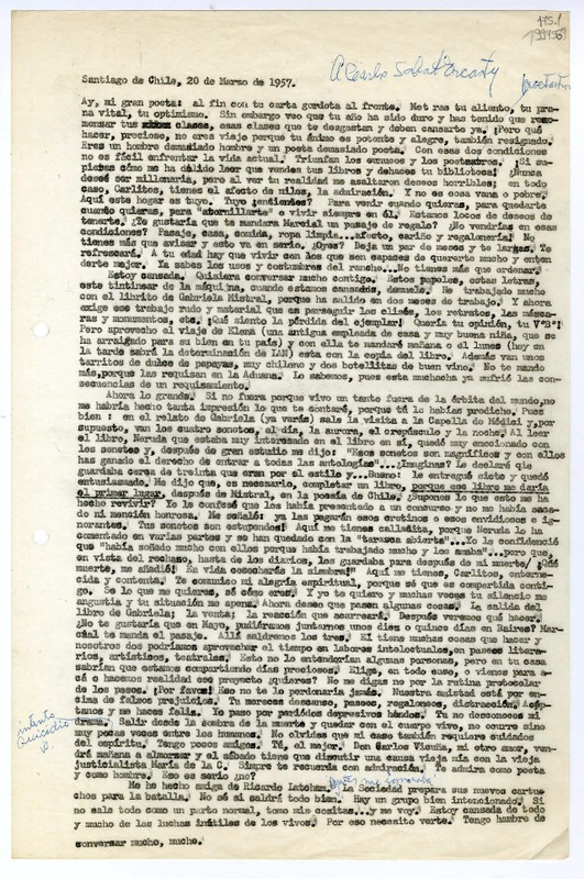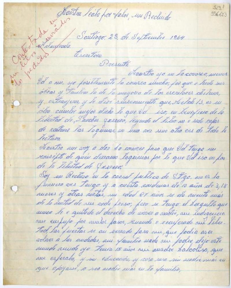 Rapu Haoa, Sergio - Manuscritos chilenos - Correspondencia