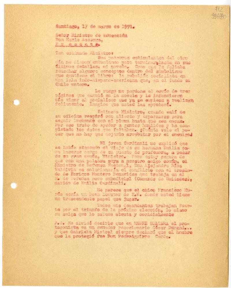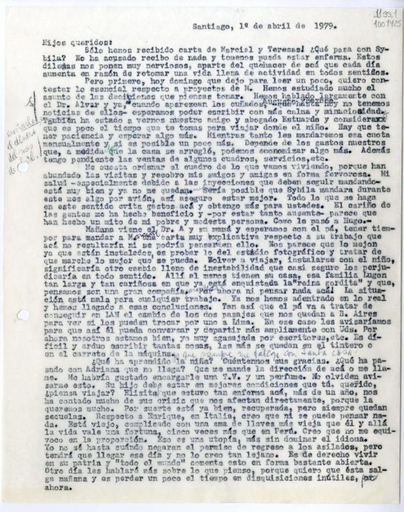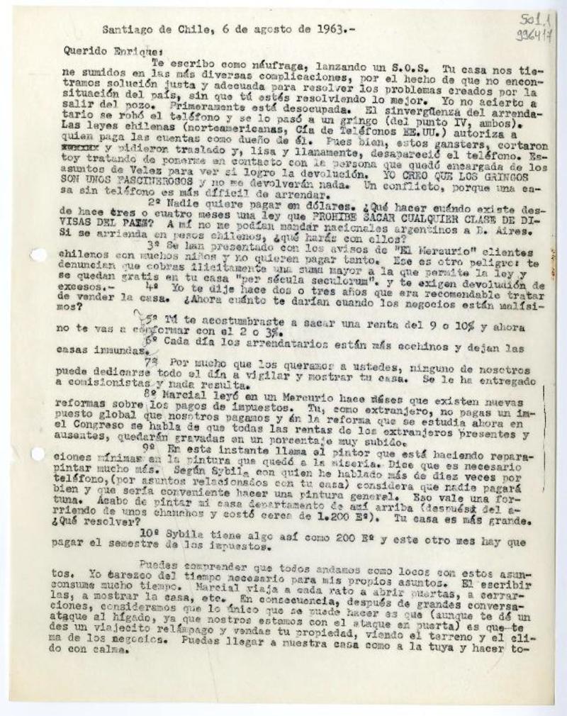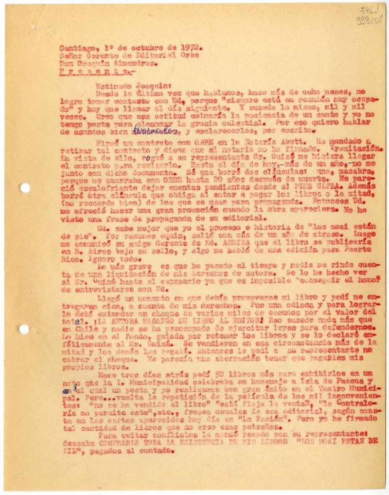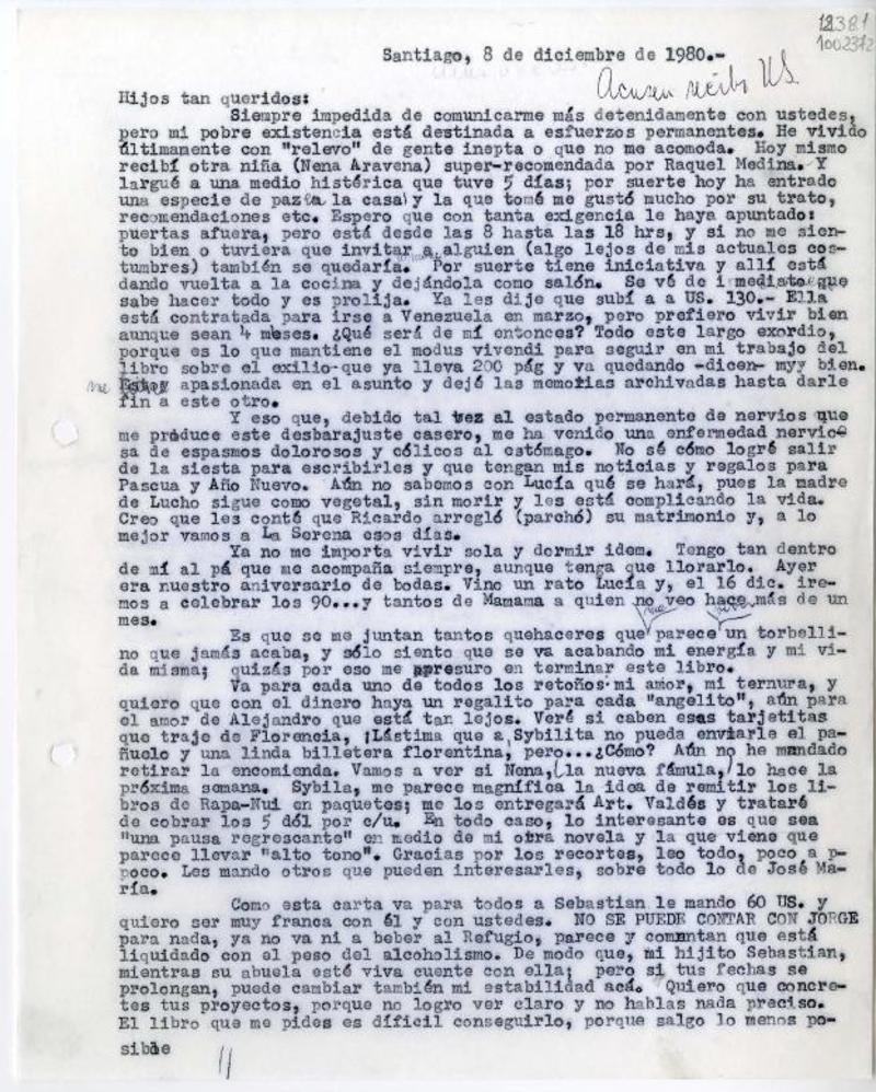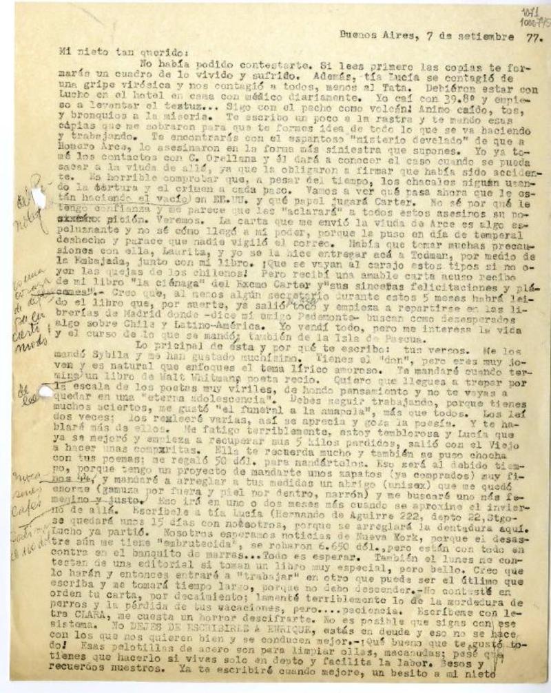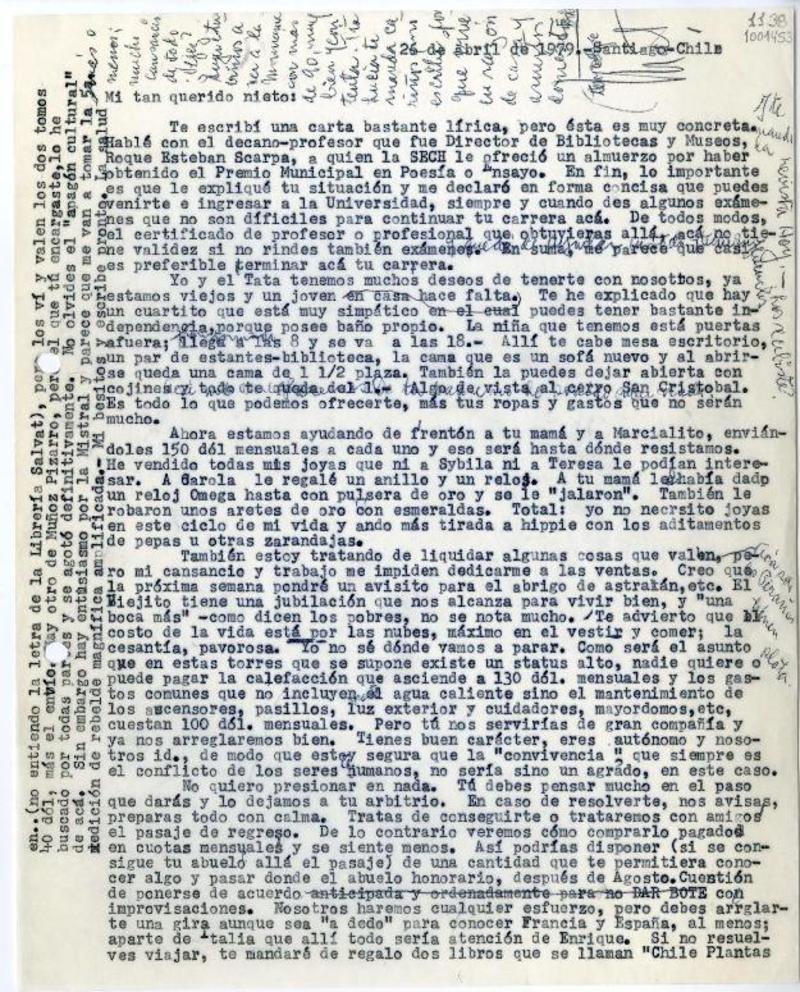 Rapu Haoa, Sergio - Manuscritos chilenos - Correspondencia