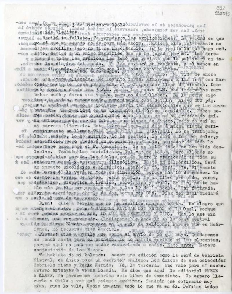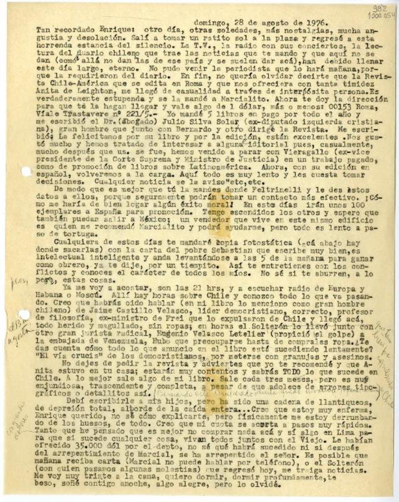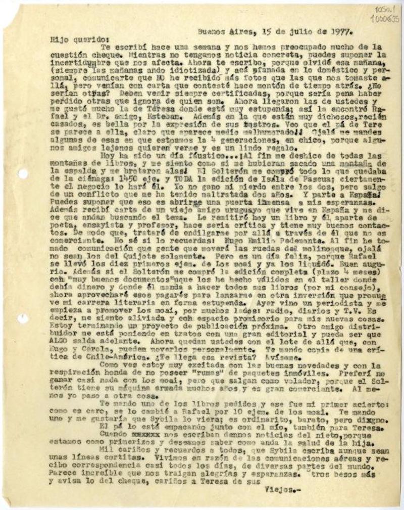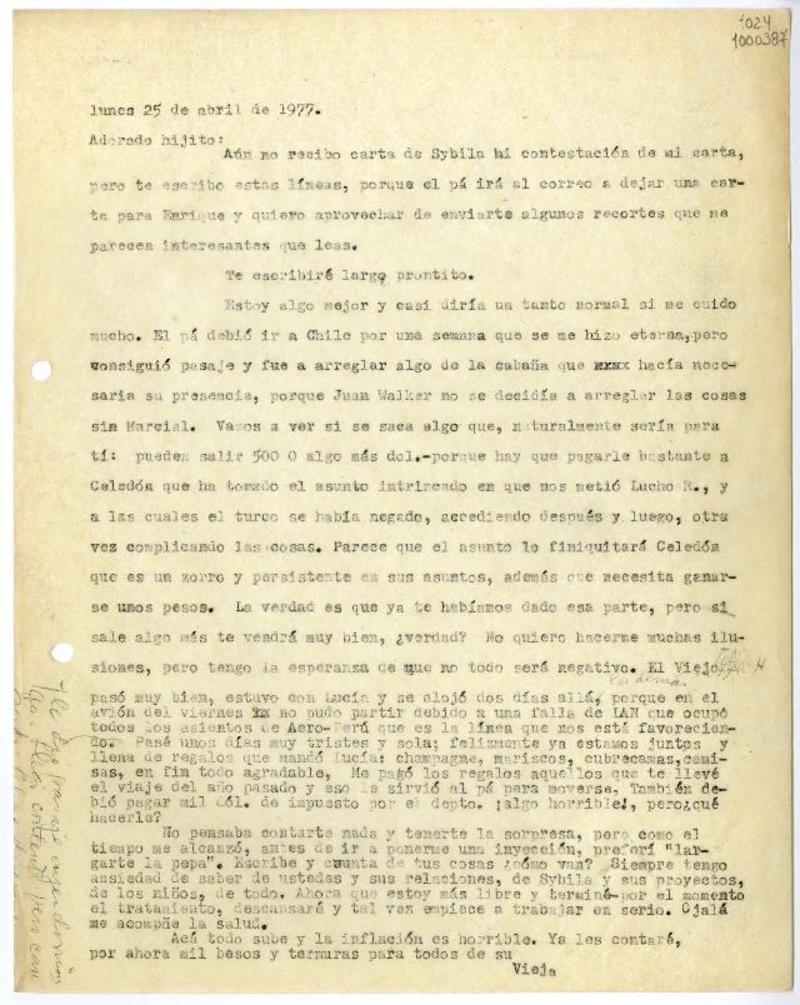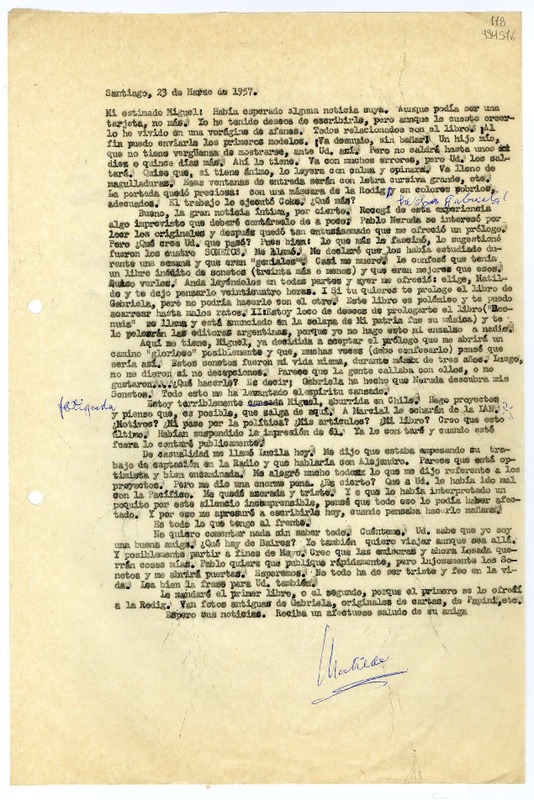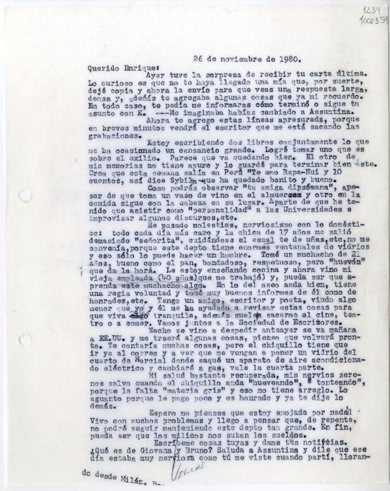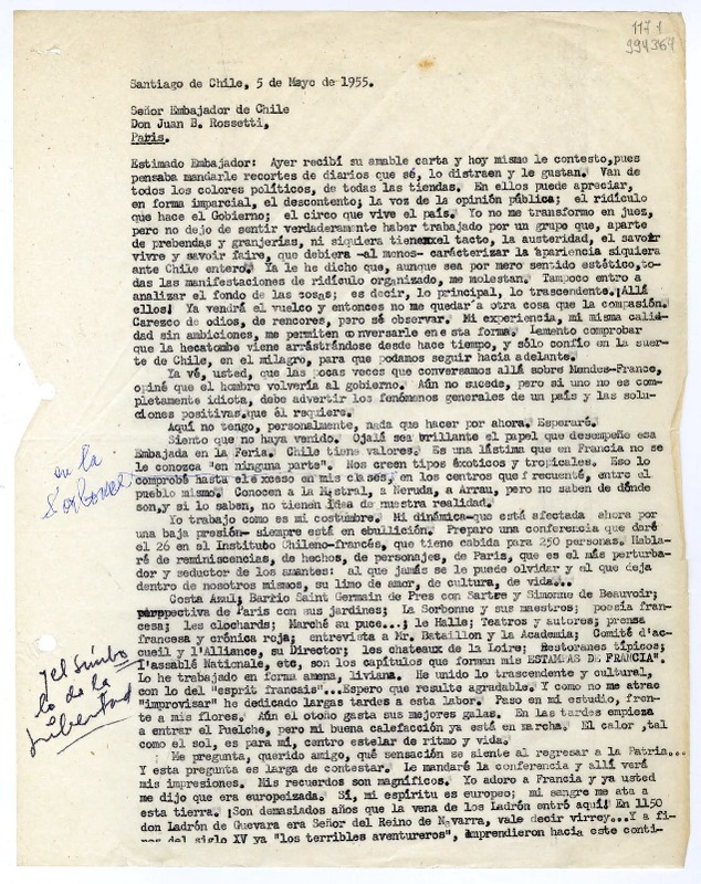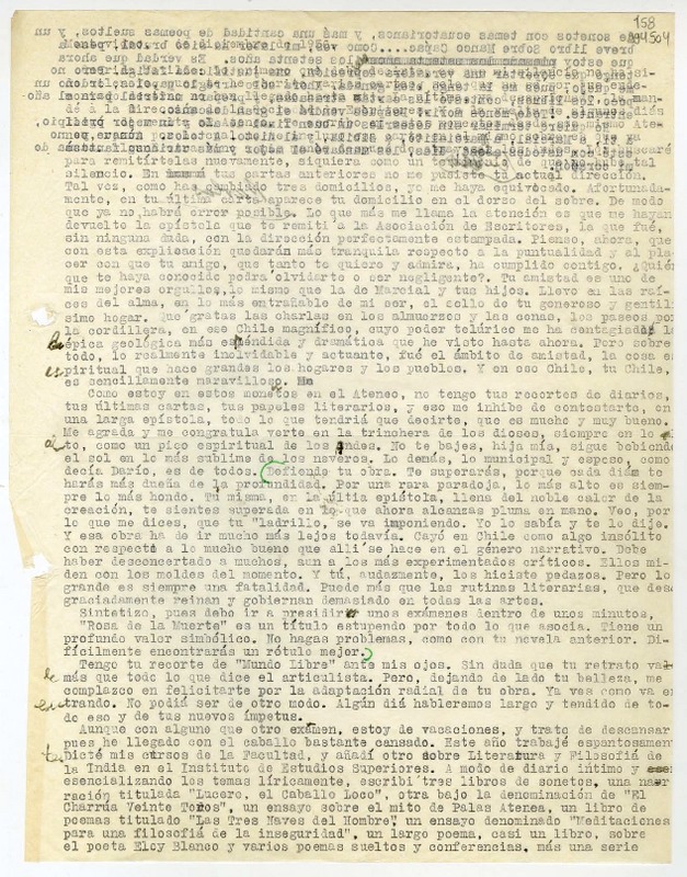 Rapu Haoa, Sergio - Manuscritos chilenos - Correspondencia