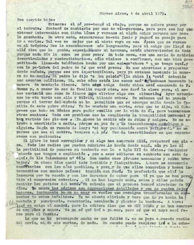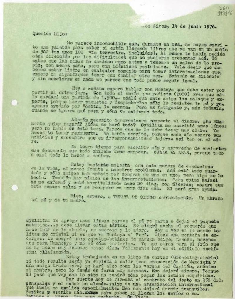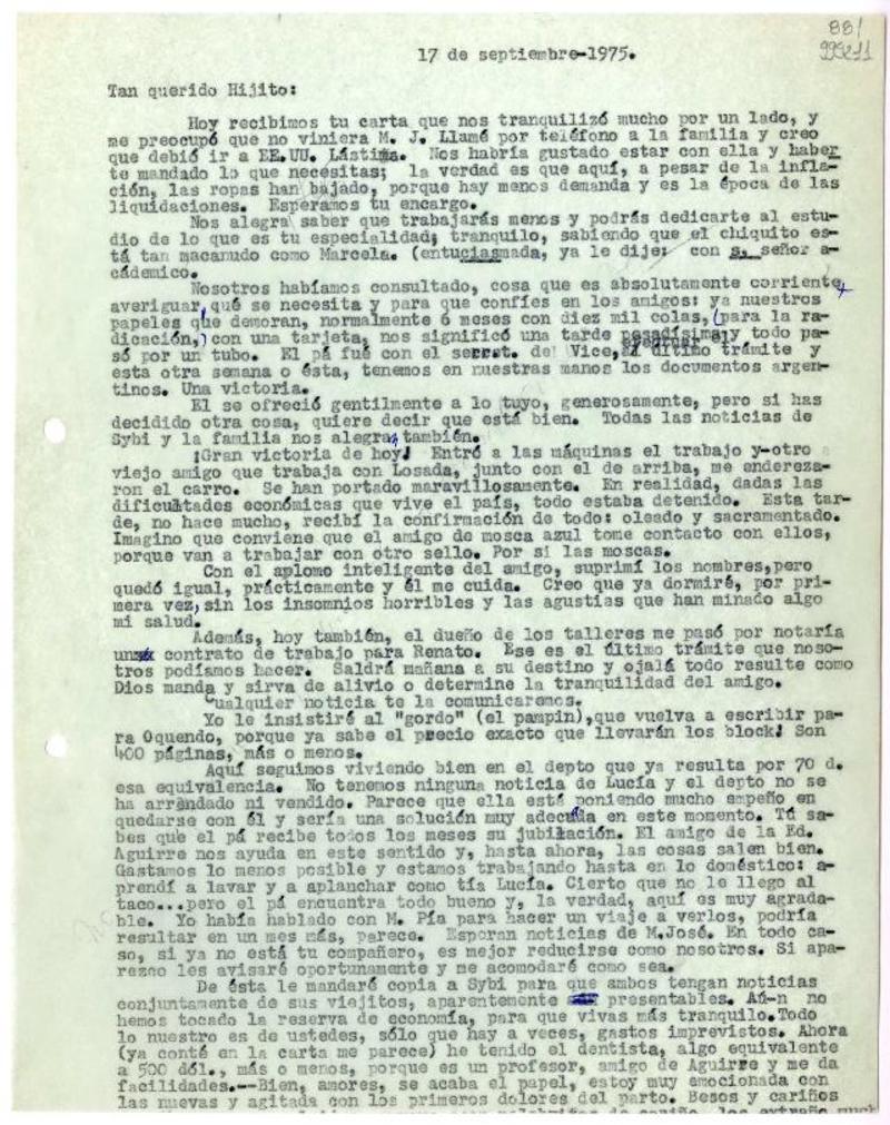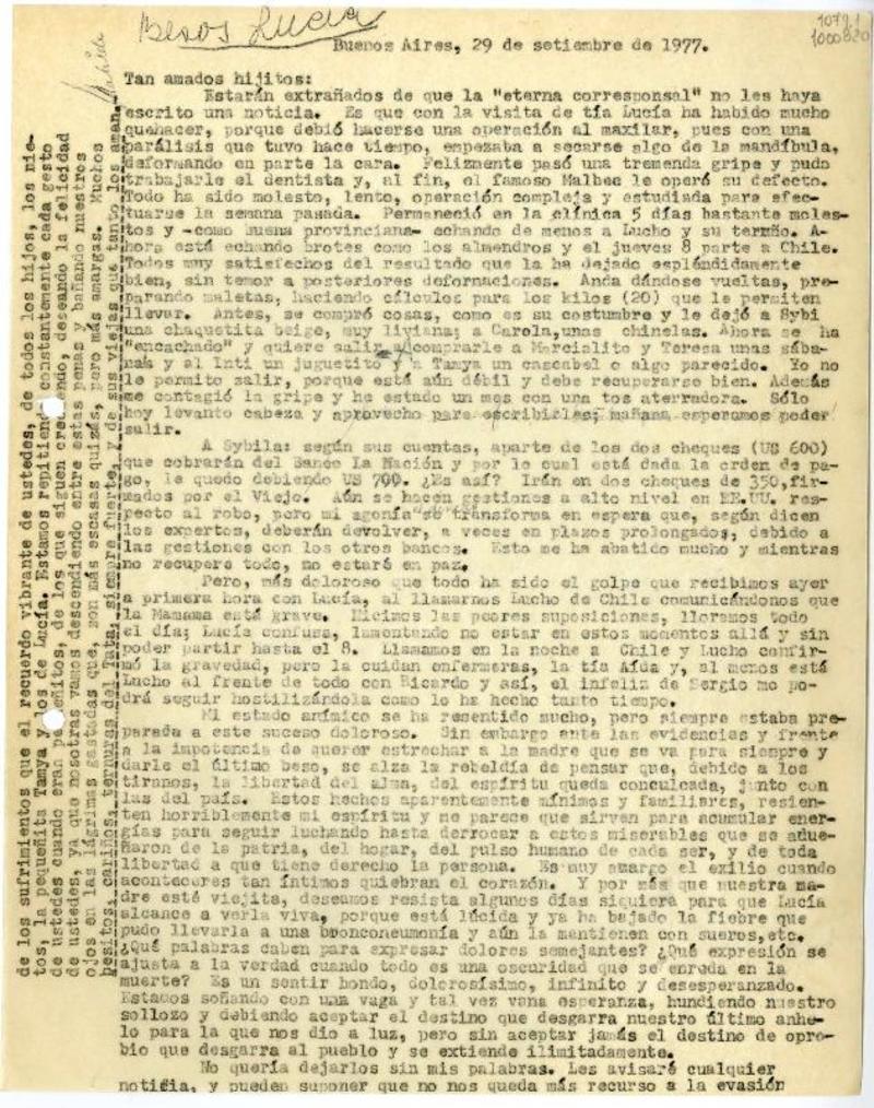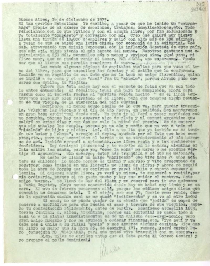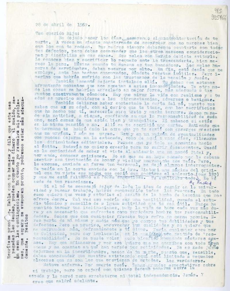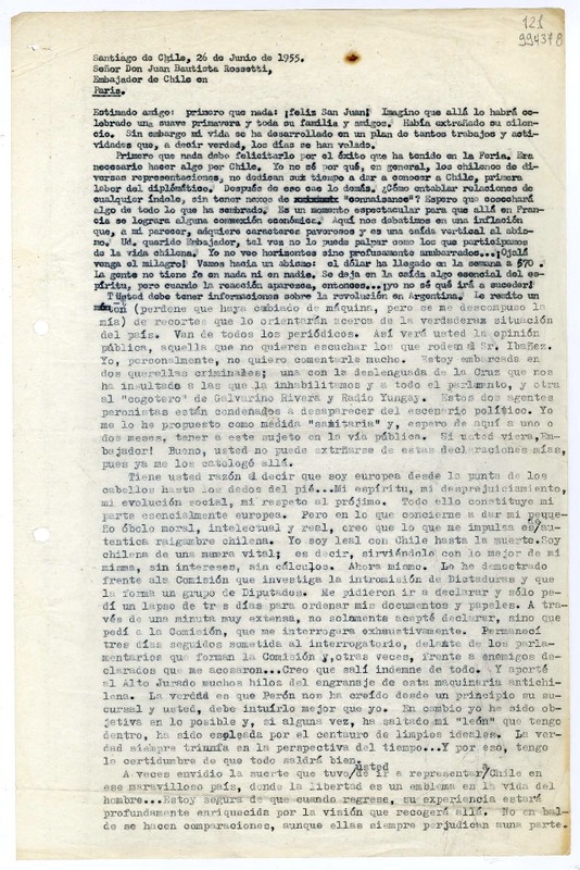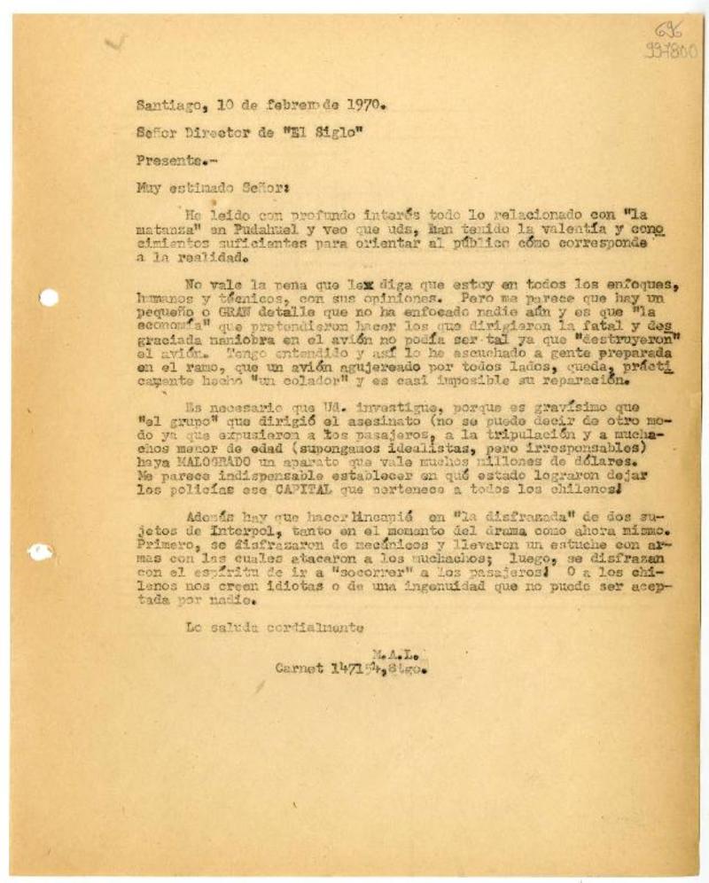 Rapu Haoa, Sergio - Manuscritos chilenos - Correspondencia